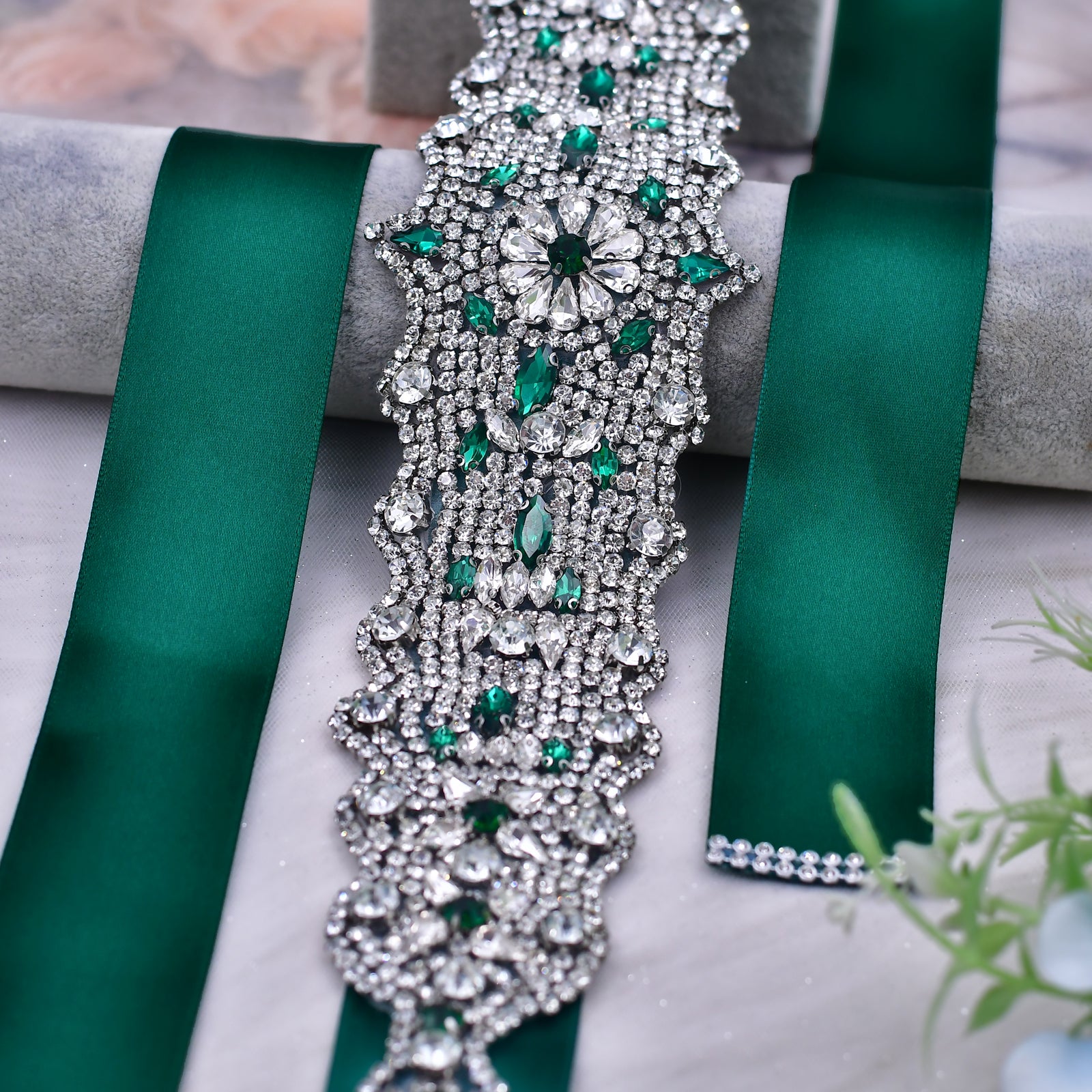 BRIDELLA BS01 Wedding Belts New Silver Diamond Handmade Dress Belt