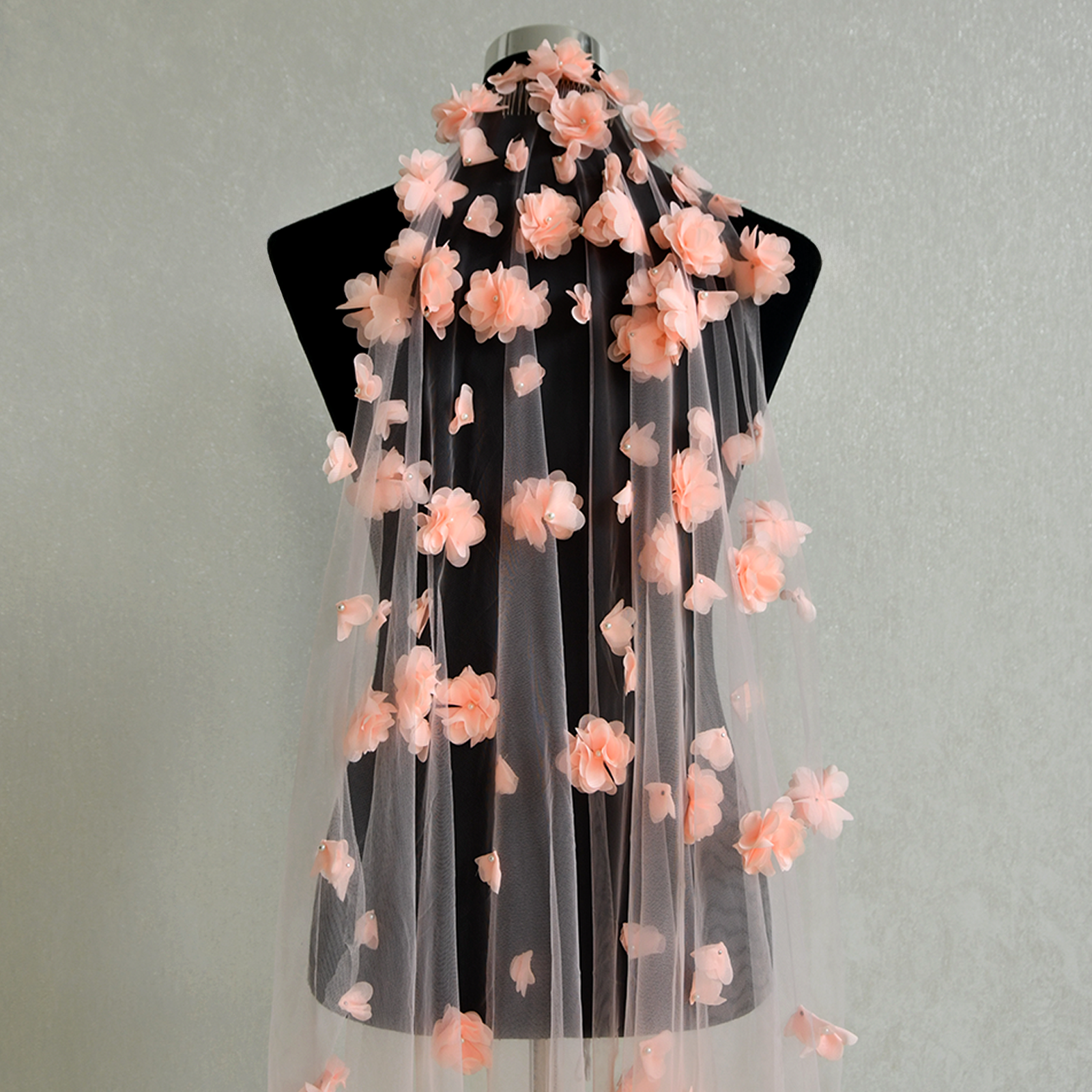 BRIDELLA BM137 A Pink Three-Dimensional Flower Decorated Bridal Veil With A Comb A Cute And Sweet Wedding Dress Accessory