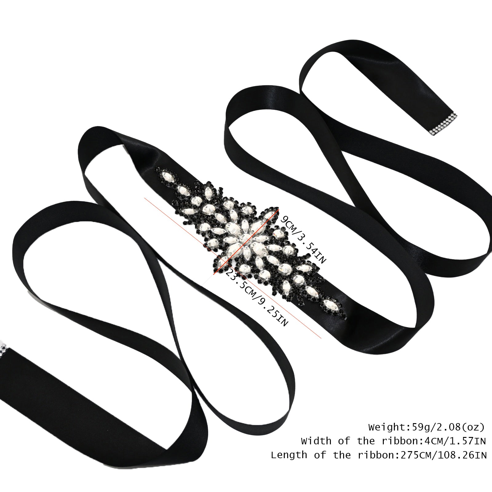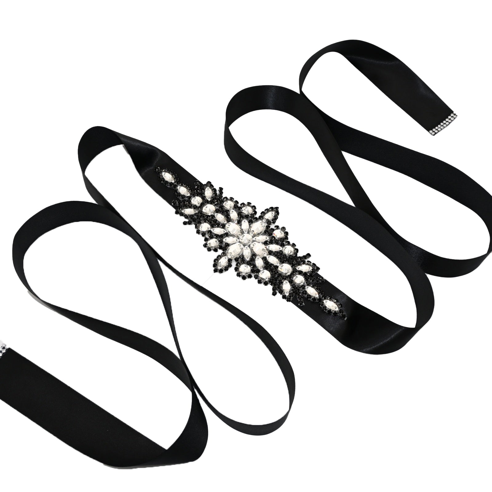 Elevate your look with this black rhinestone belt, perfect for weddings, proms, and special occasions.