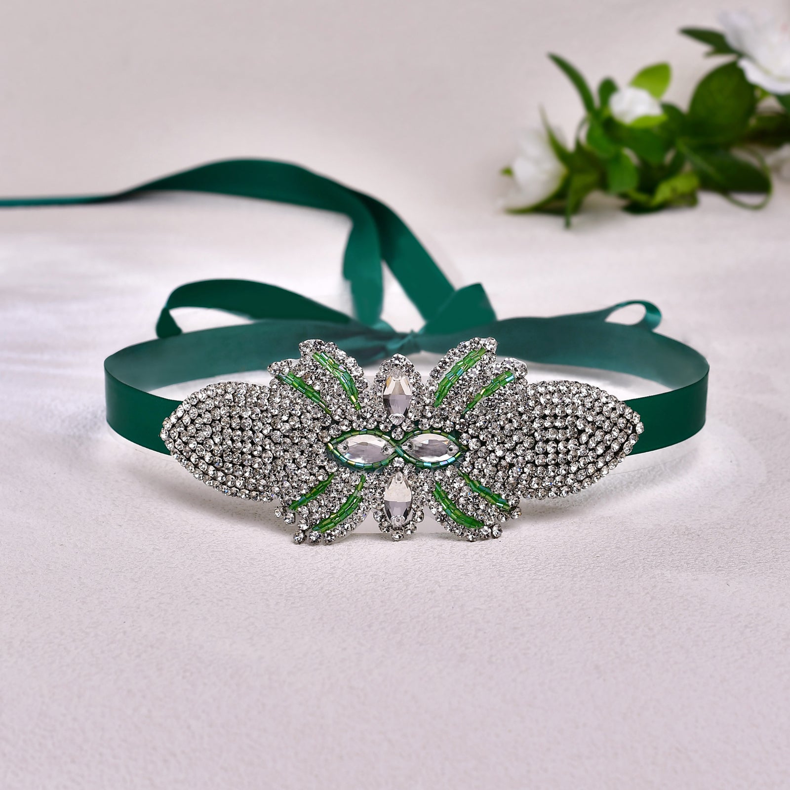 BRIDELLA BS152KL Emerald Dress Belt Wedding Diamond Accessories