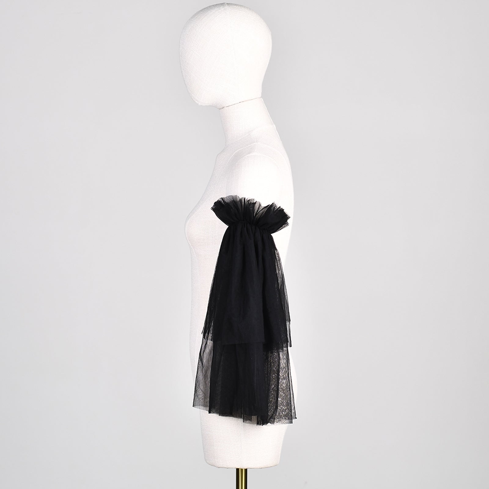 BRIDELLA BMM20 Black Bridal Sleeves Double Tulle Wedding Gloves Short Wedding Accessories Women's Arm Decorations
