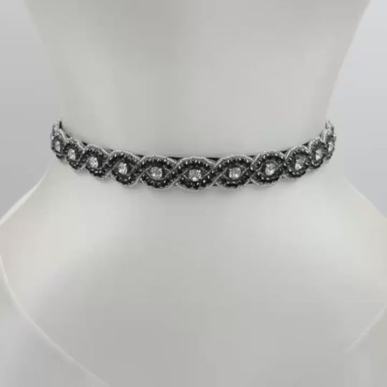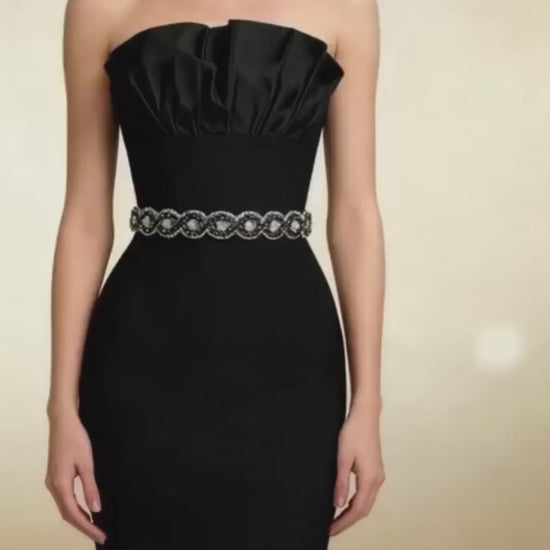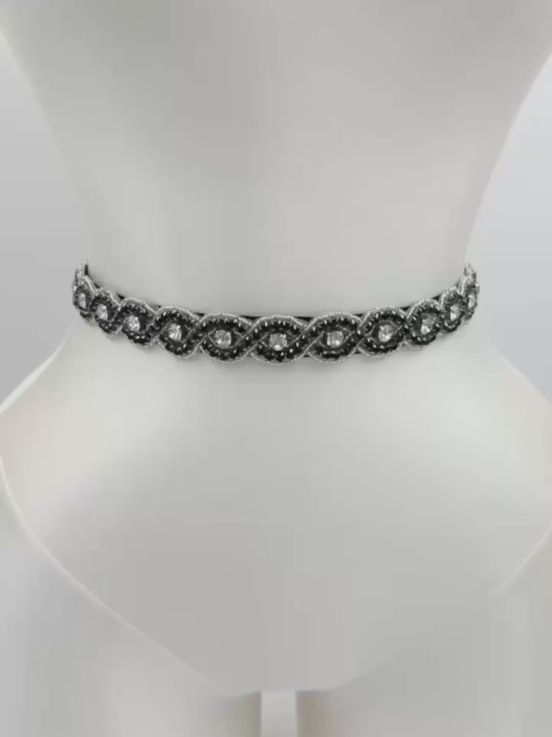 Elevate your look with this black rhinestone belt, perfect for weddings, proms, and special occasions.