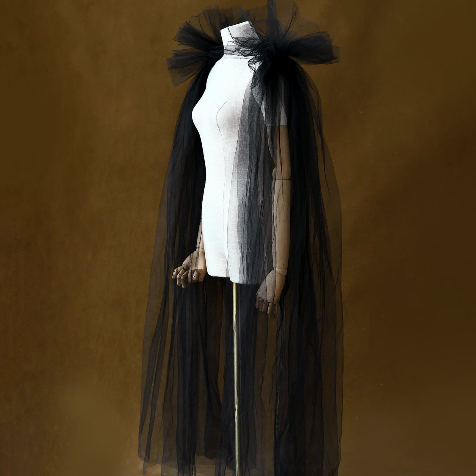 BRIDELLA BMG52 Black Long Shawl Fake Sleeves Detachable Double Shoulder Accessories Stage Performance Props