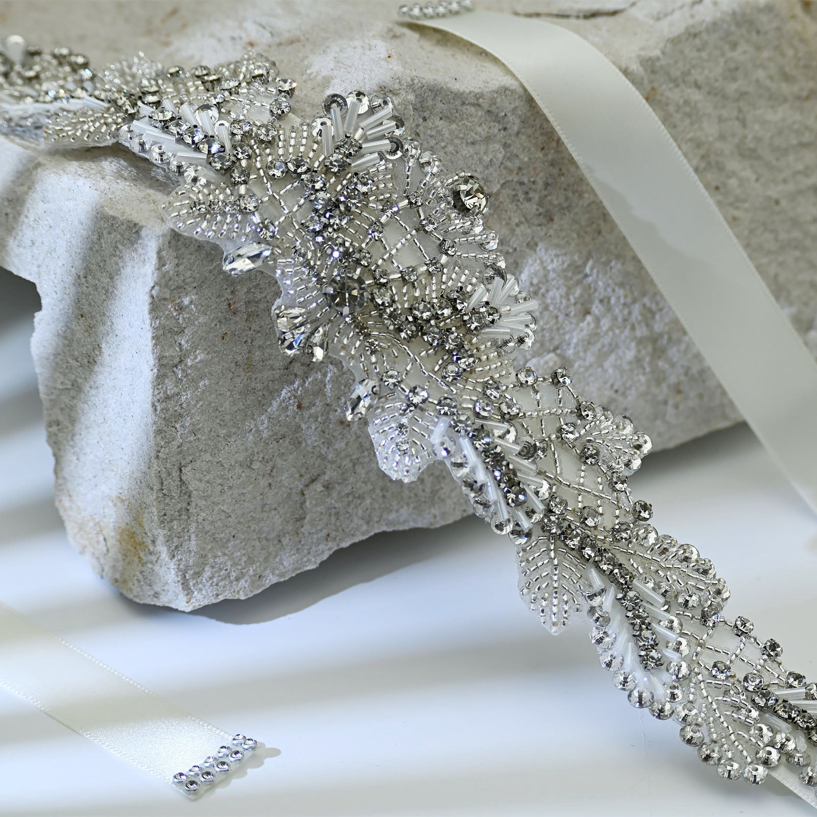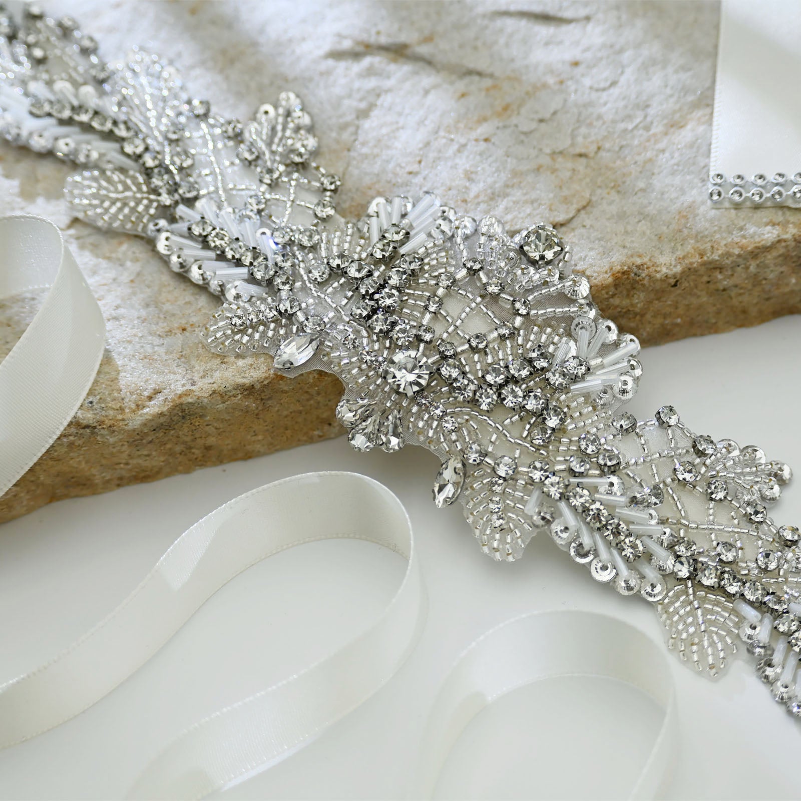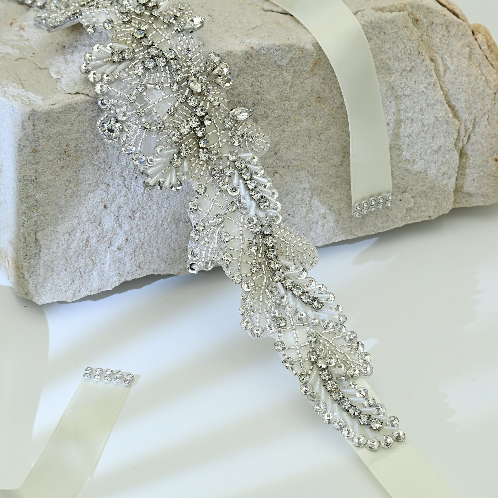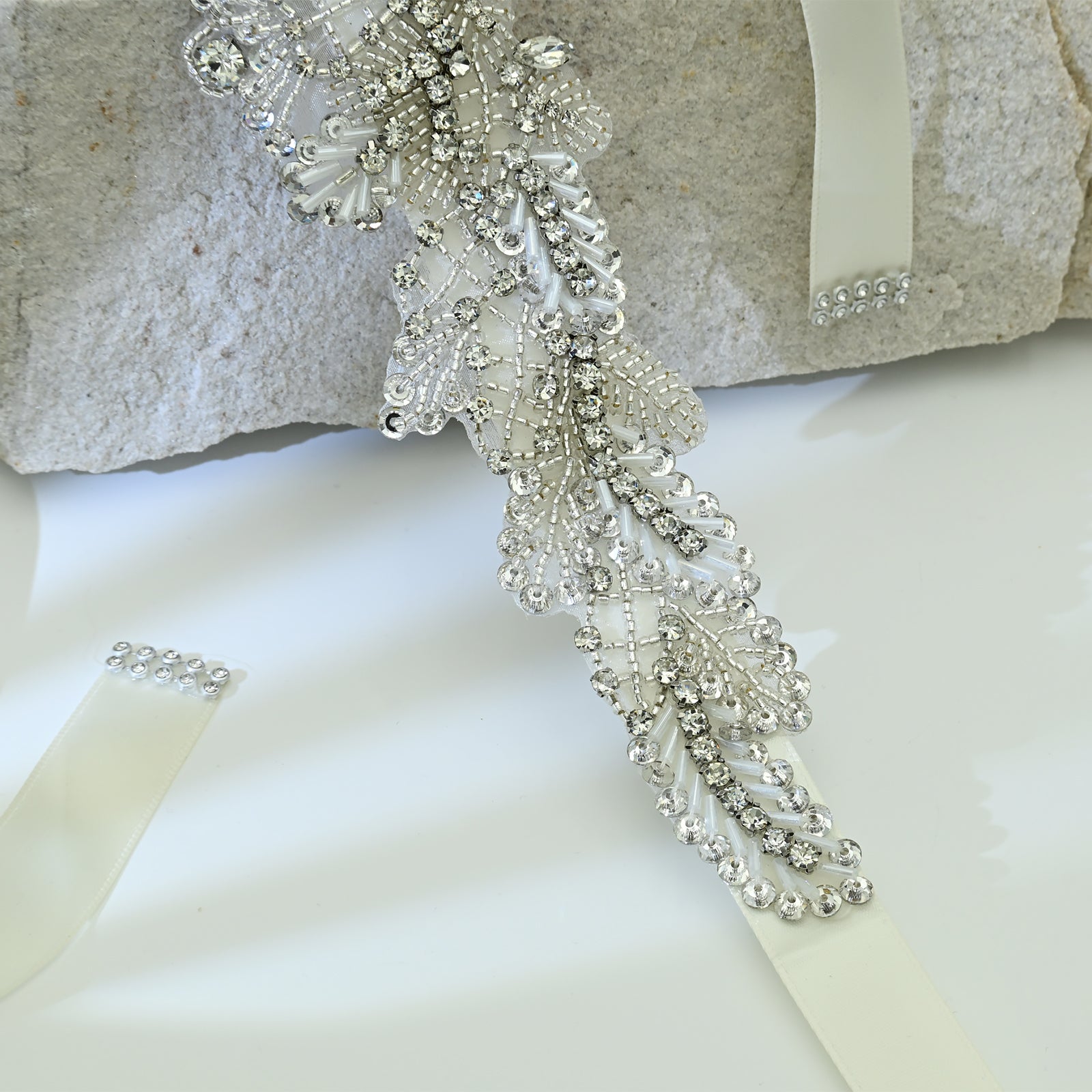 Elevate your look with this off white rhinestone belt, perfect for weddings, proms, and special occasions.