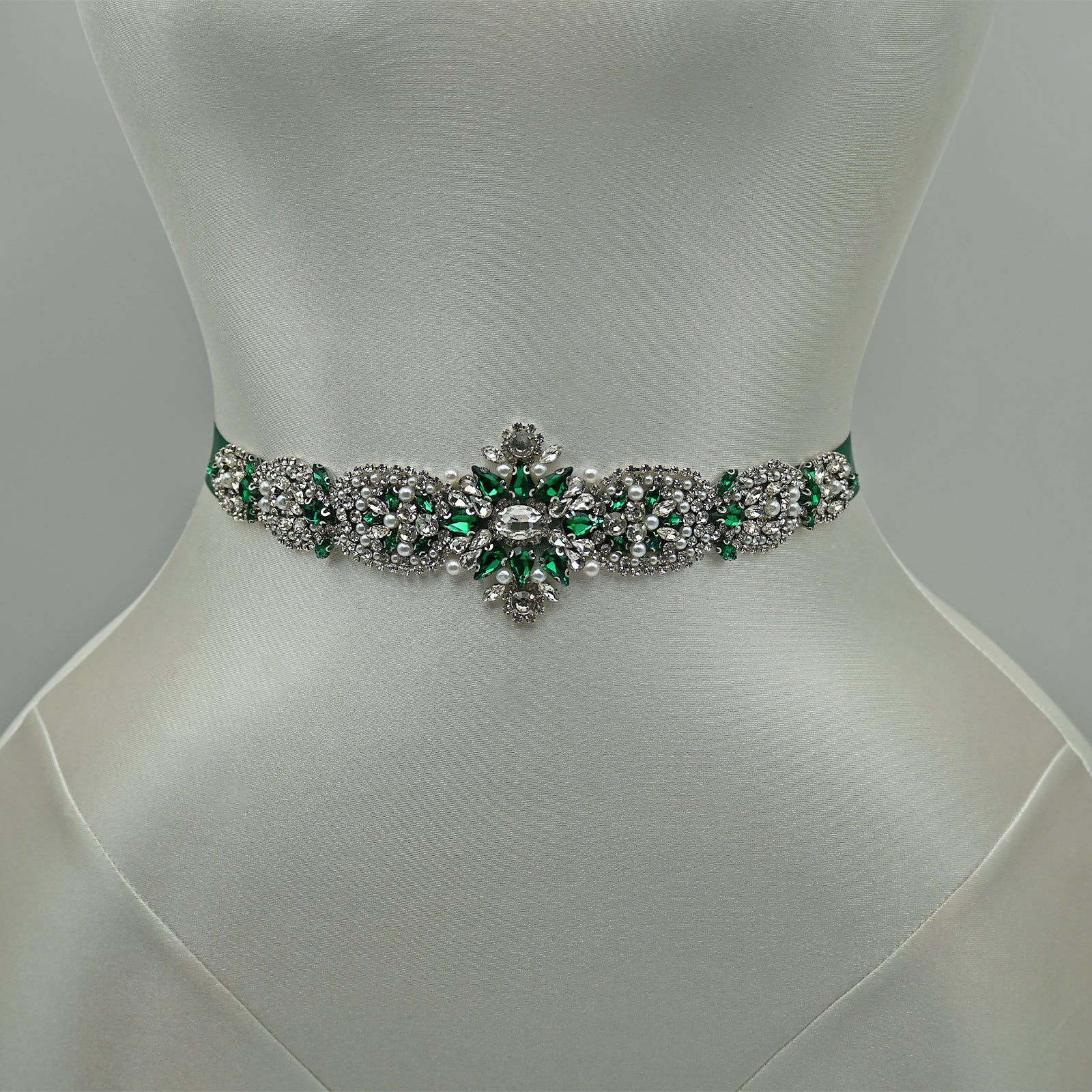 Bridella BS84KL Green Rhinestone & Pearl Belt