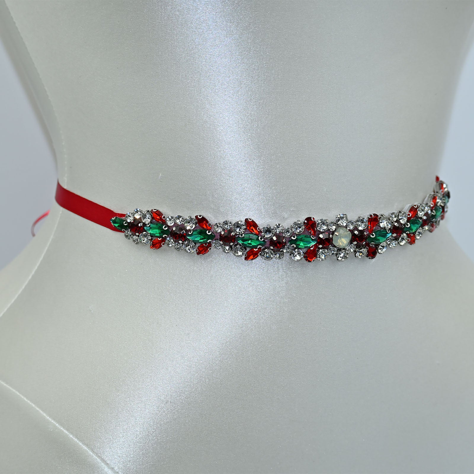 Bridella BS113R Burgundy Rhinestone & Pearl Belt