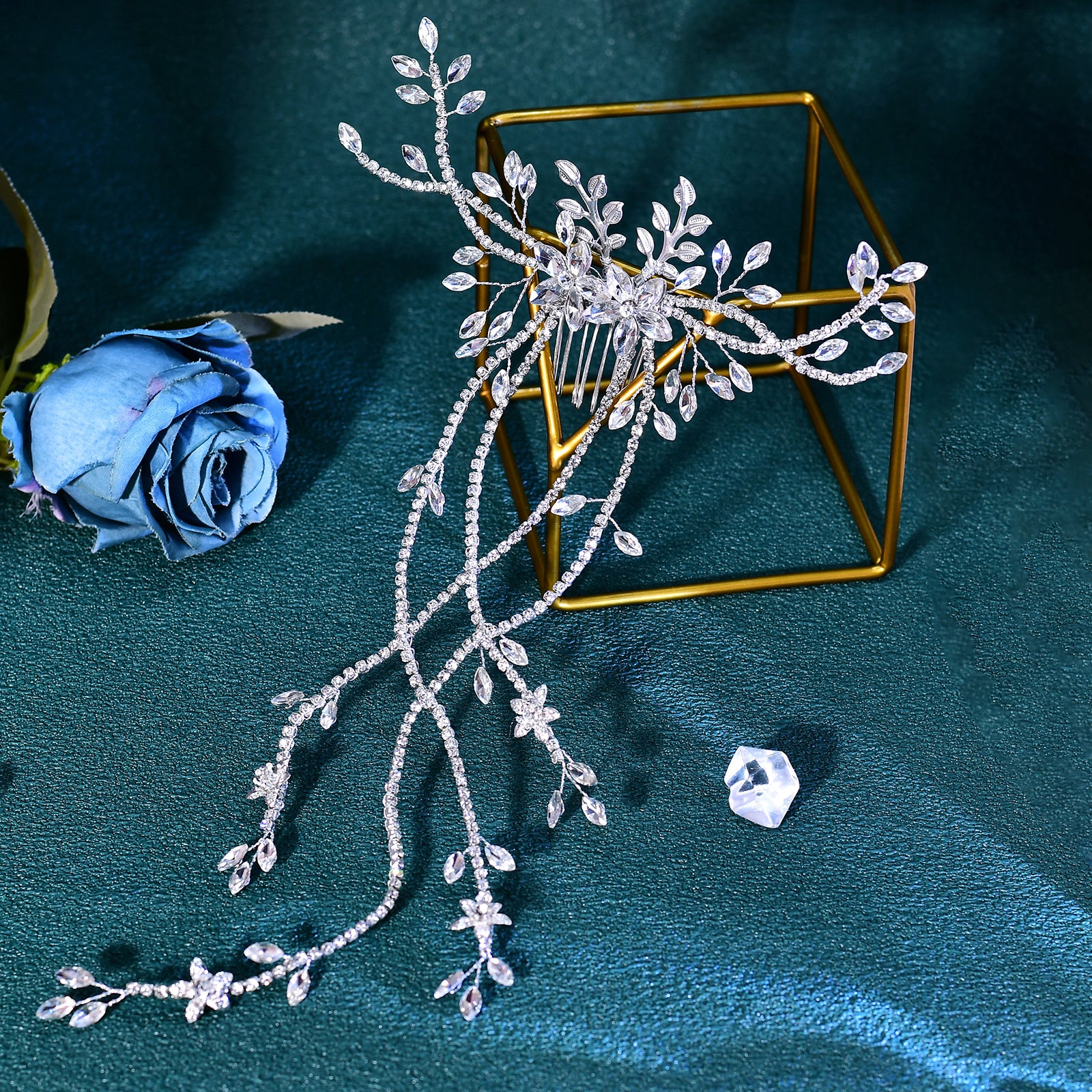 BRIDELLA BHP873 Bridal Rhinestone Hair Comb Wedding Fashion Hair Accessories Banquet Party Headwear Alloy Leaf Bride Headdress