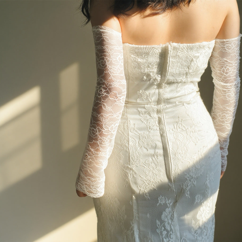 BRIDELLA BG30 Bridal Gloves White Printed Lace Wedding Gloves Elegant Long Women's Gloves