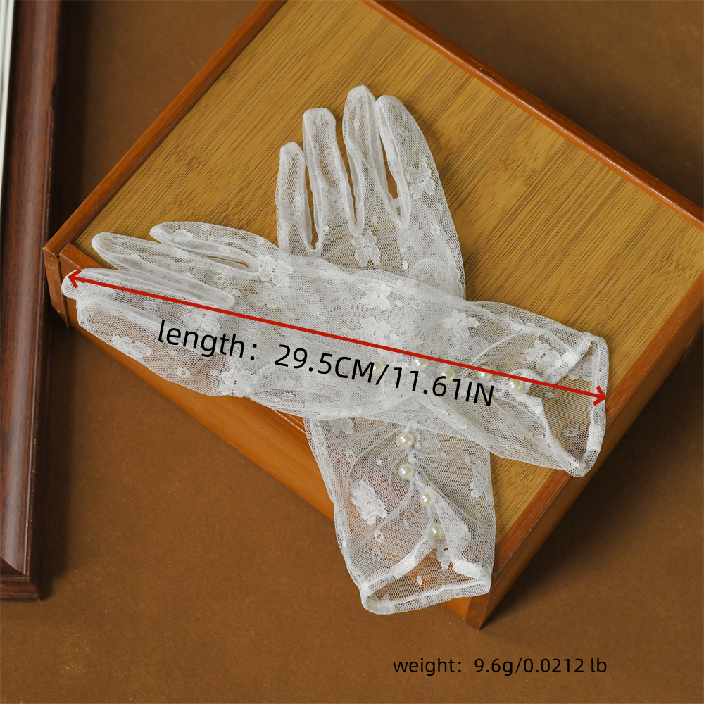 BRIDELLA BG39 Bridal Gloves White Printed Lace Short Wedding Gloves Pearl Embellished Women's Gloves Wedding Accessories