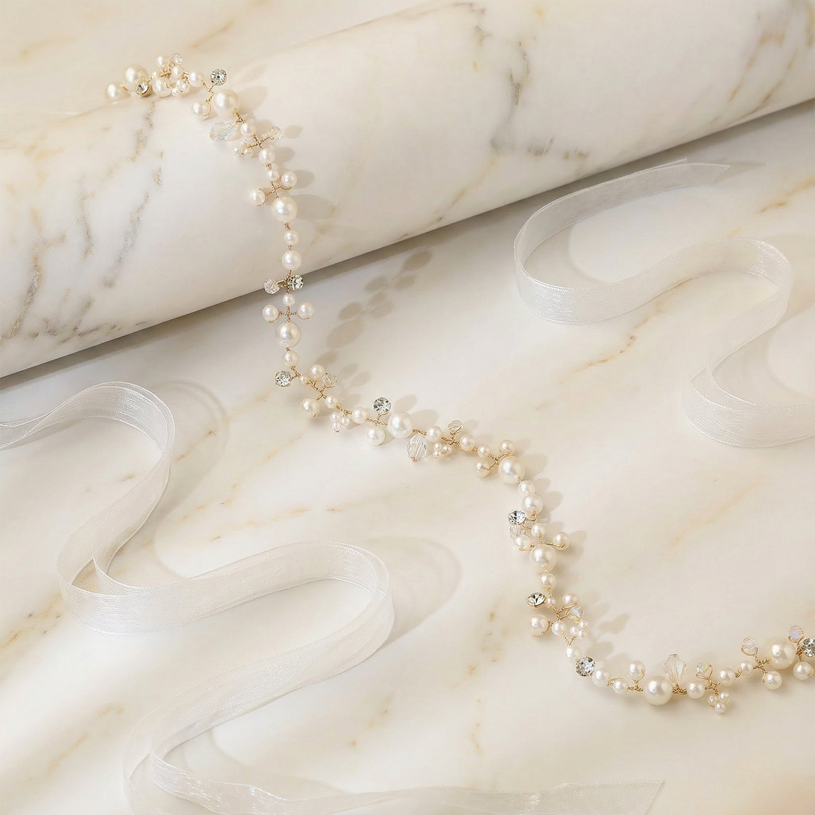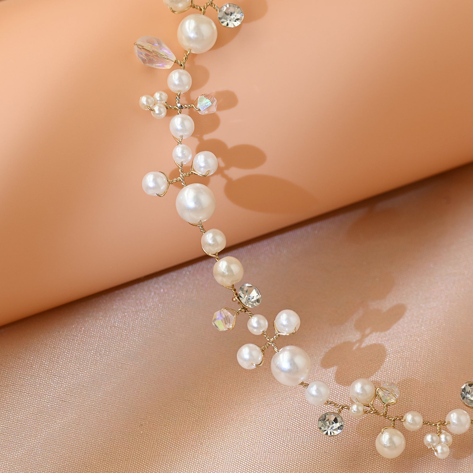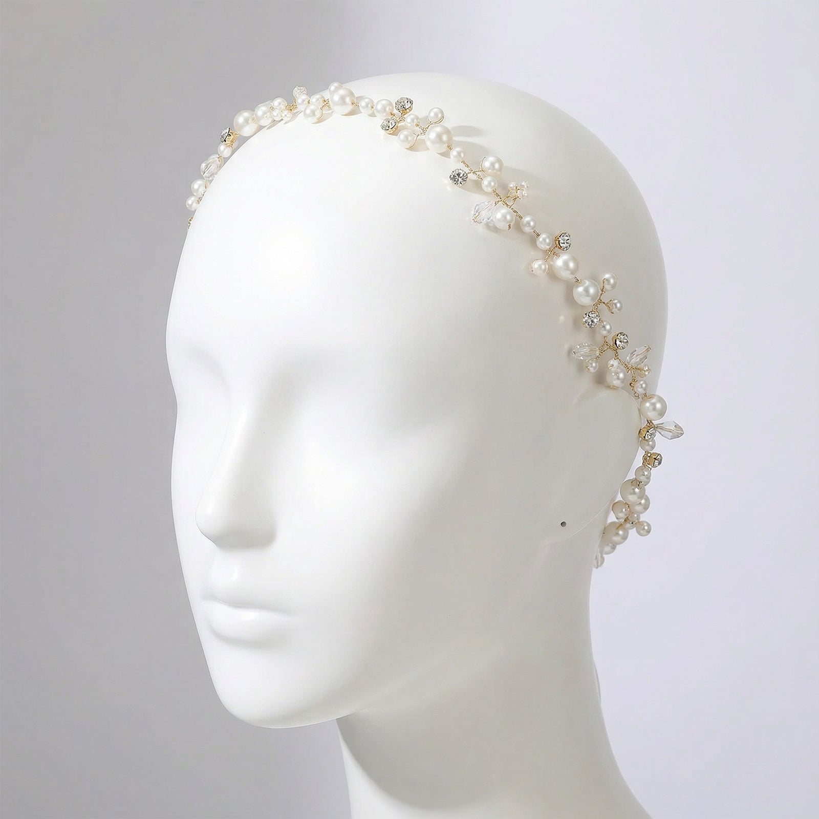 Elevate your look with this gold pearl tiara, perfect for weddings, proms, and special occasions.