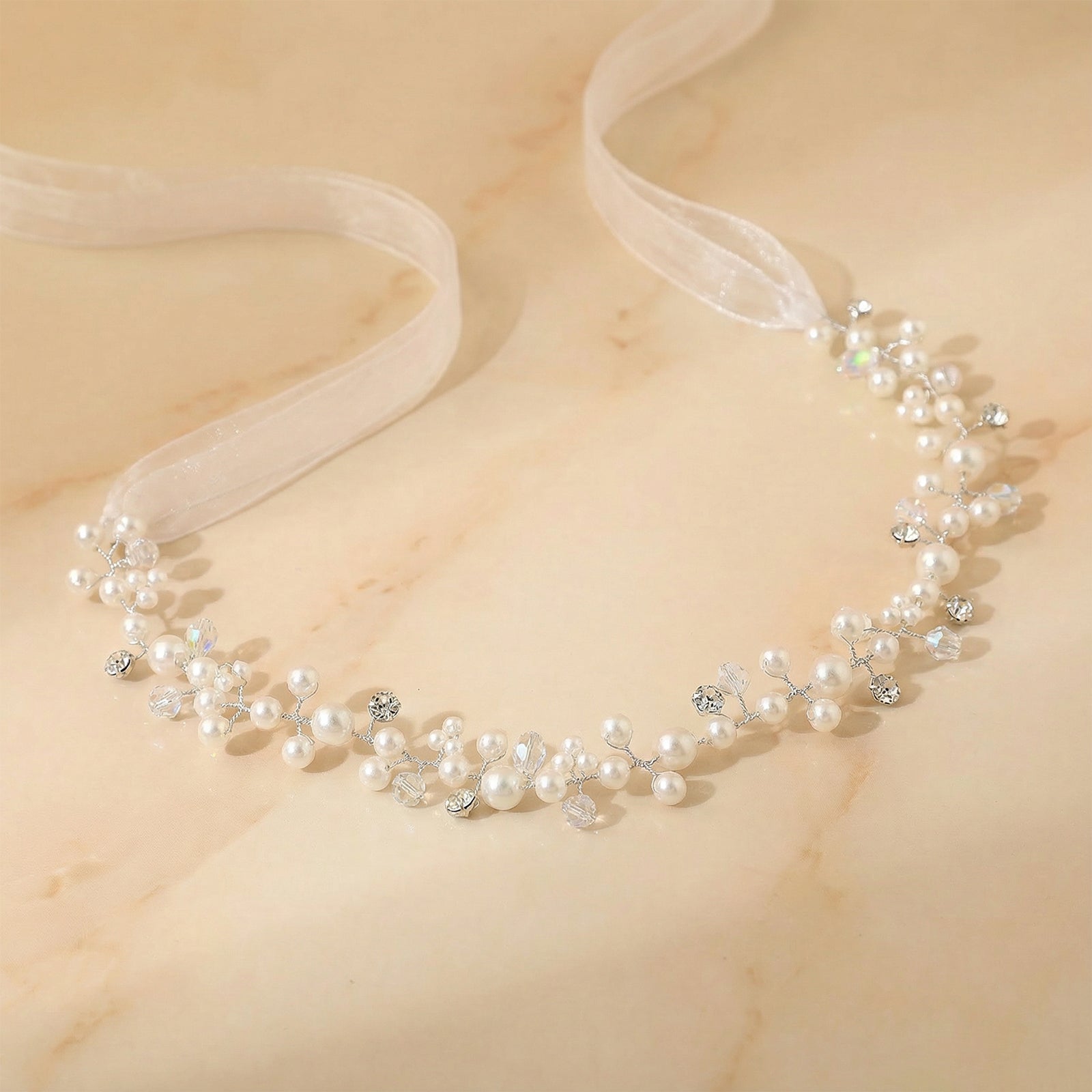 Bridella BHP03-S Silver Pearl Tiara