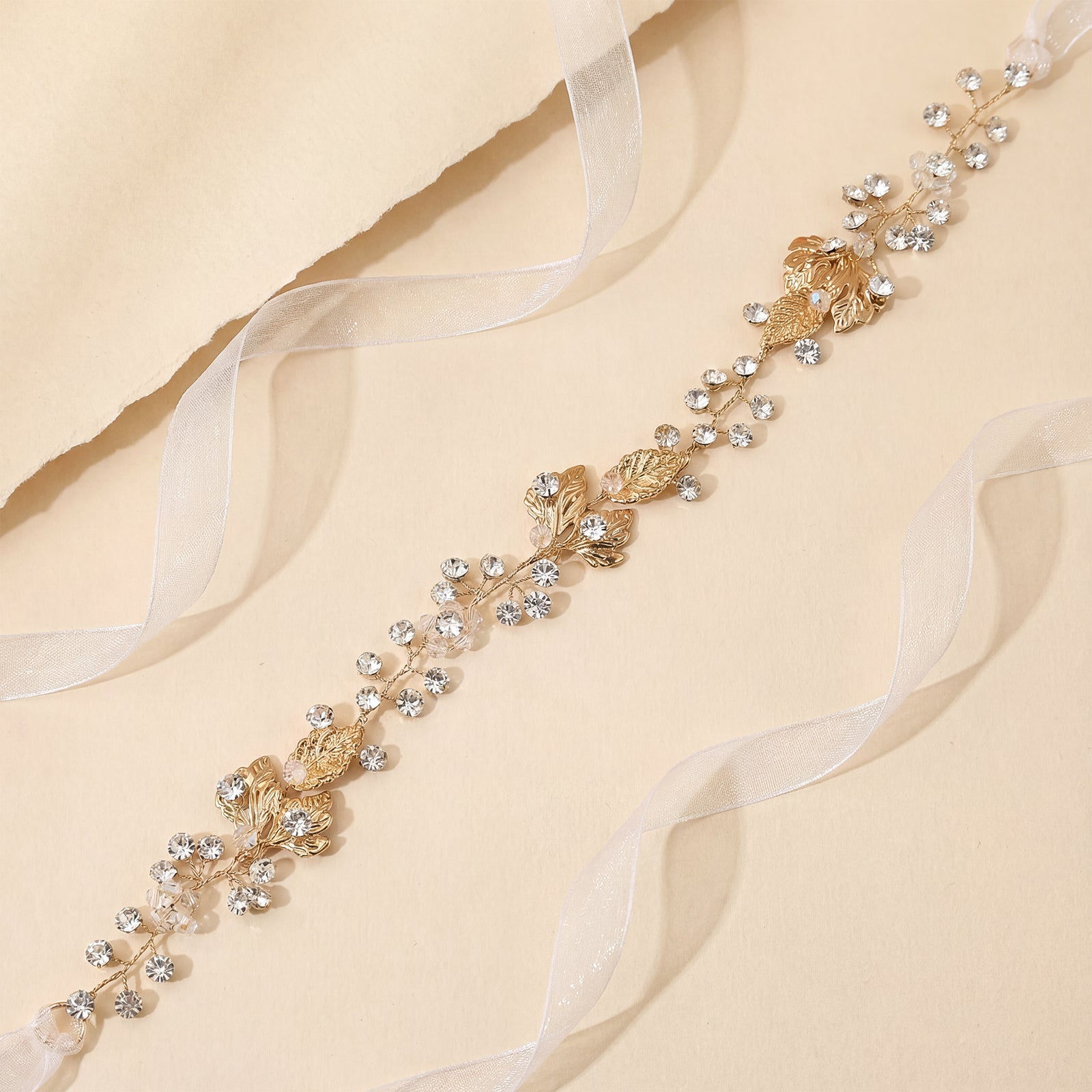 Elevate your look with this gold rhinestone headband, perfect for weddings, proms, and special occasions.