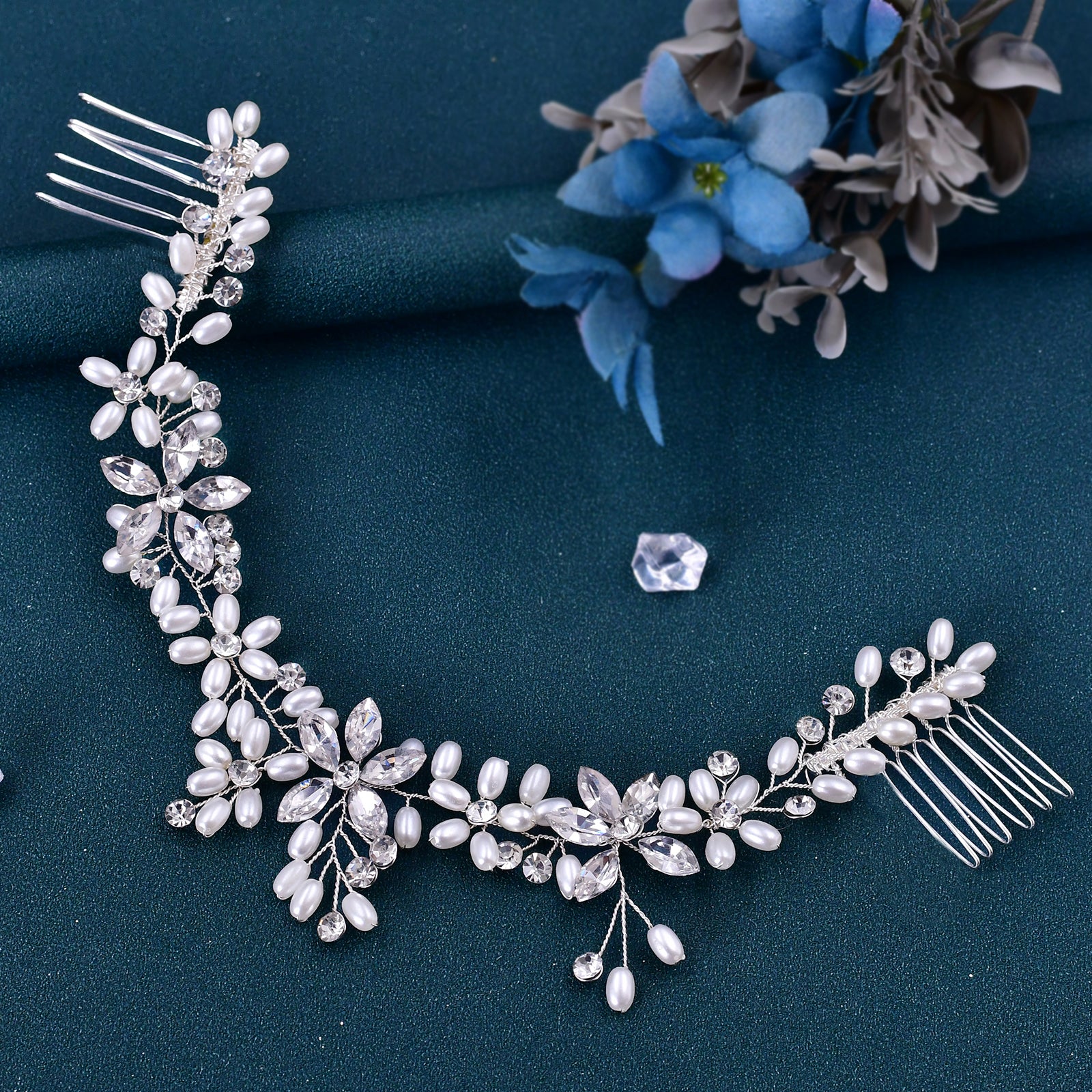 BRIDELLA BHP128 Wedding Headband with Combs Woman Hair Clip Bride Tiara Headpiece Rhinestone Bridal Headwear Accessories