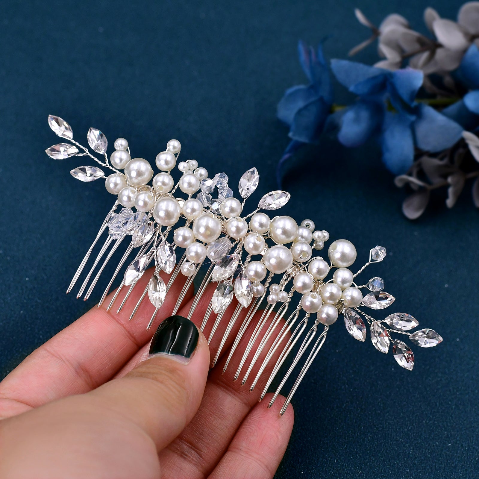 BRIDELLA BHP13 Pearl Women Hair Comb Bridal Headpiece Rhinestone Bride Headdress Wedding Hair Accessories Bridesmaid Headwear