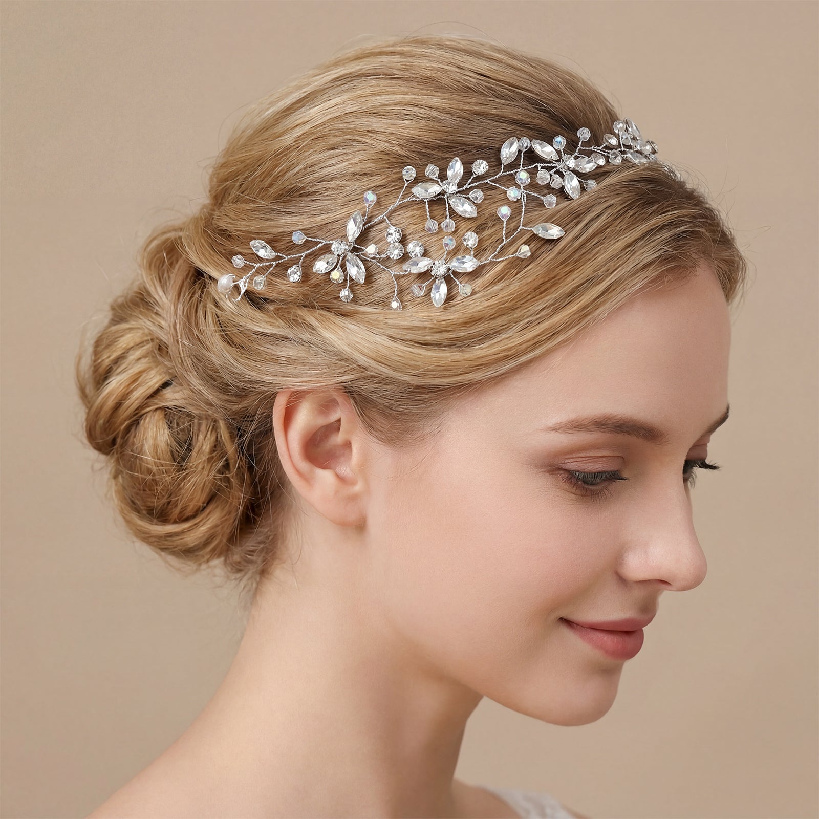 Elevate your look with this silver rhinestone and crystal headband, perfect for weddings, proms, and special occasions.