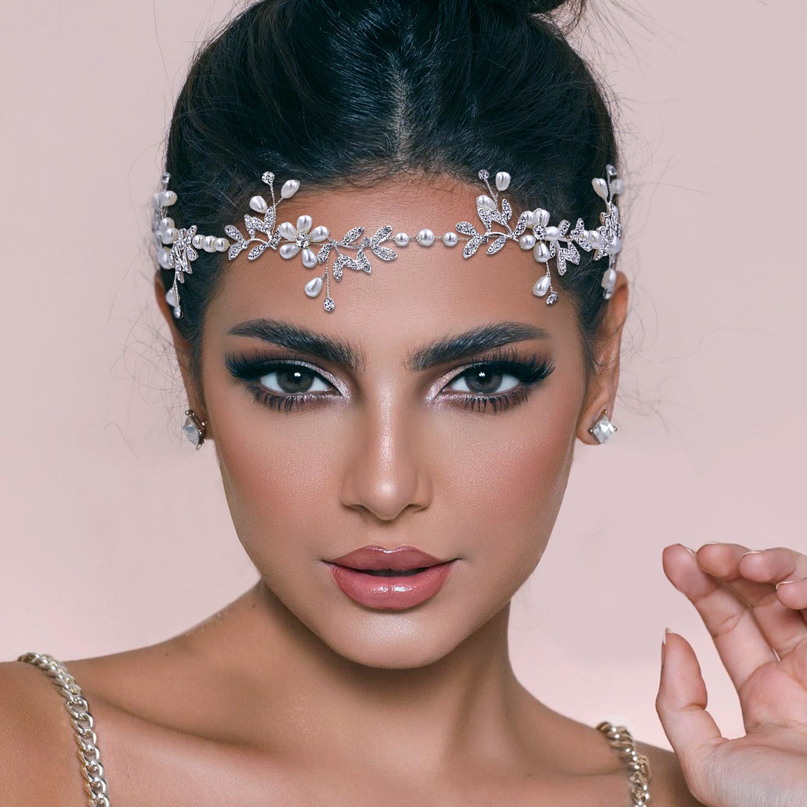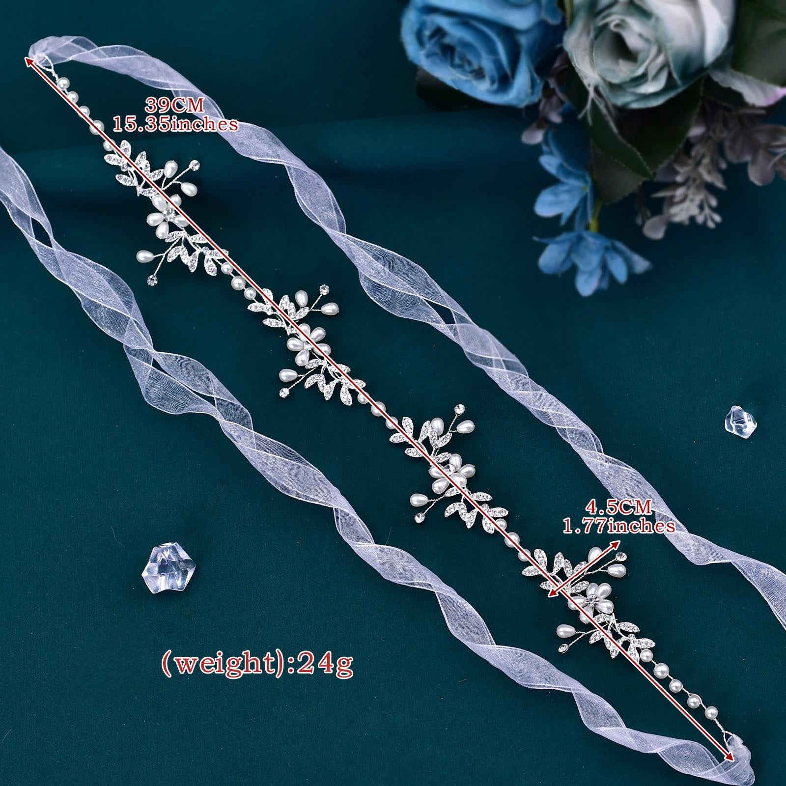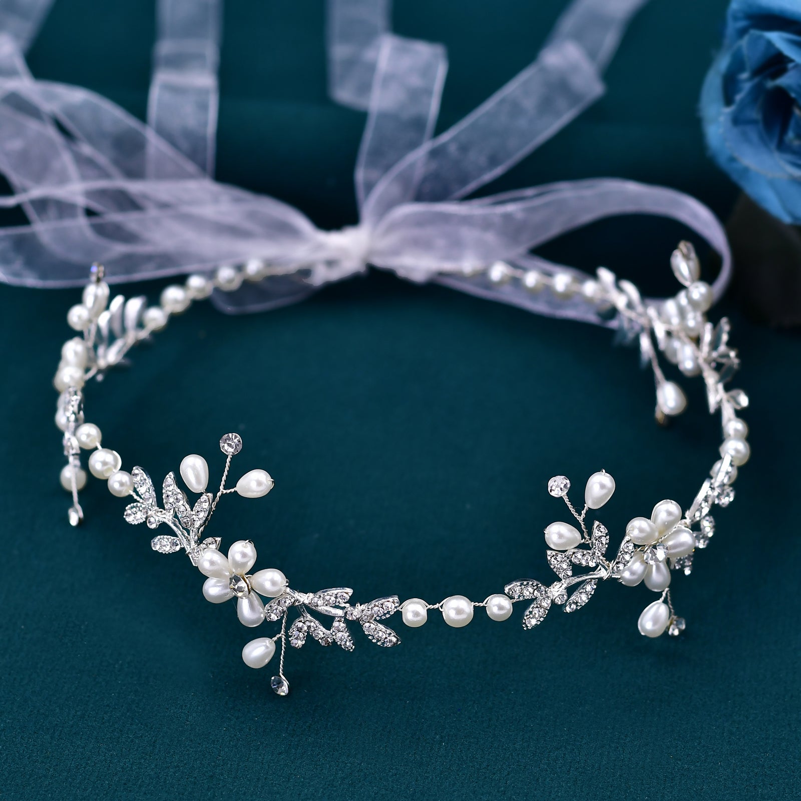 BRIDELLA BHP152 Wedding Headband Hair Accessories Pearl Alloy Leaf Headpiece for Bride Woman Headwear Girls Hairband for Party