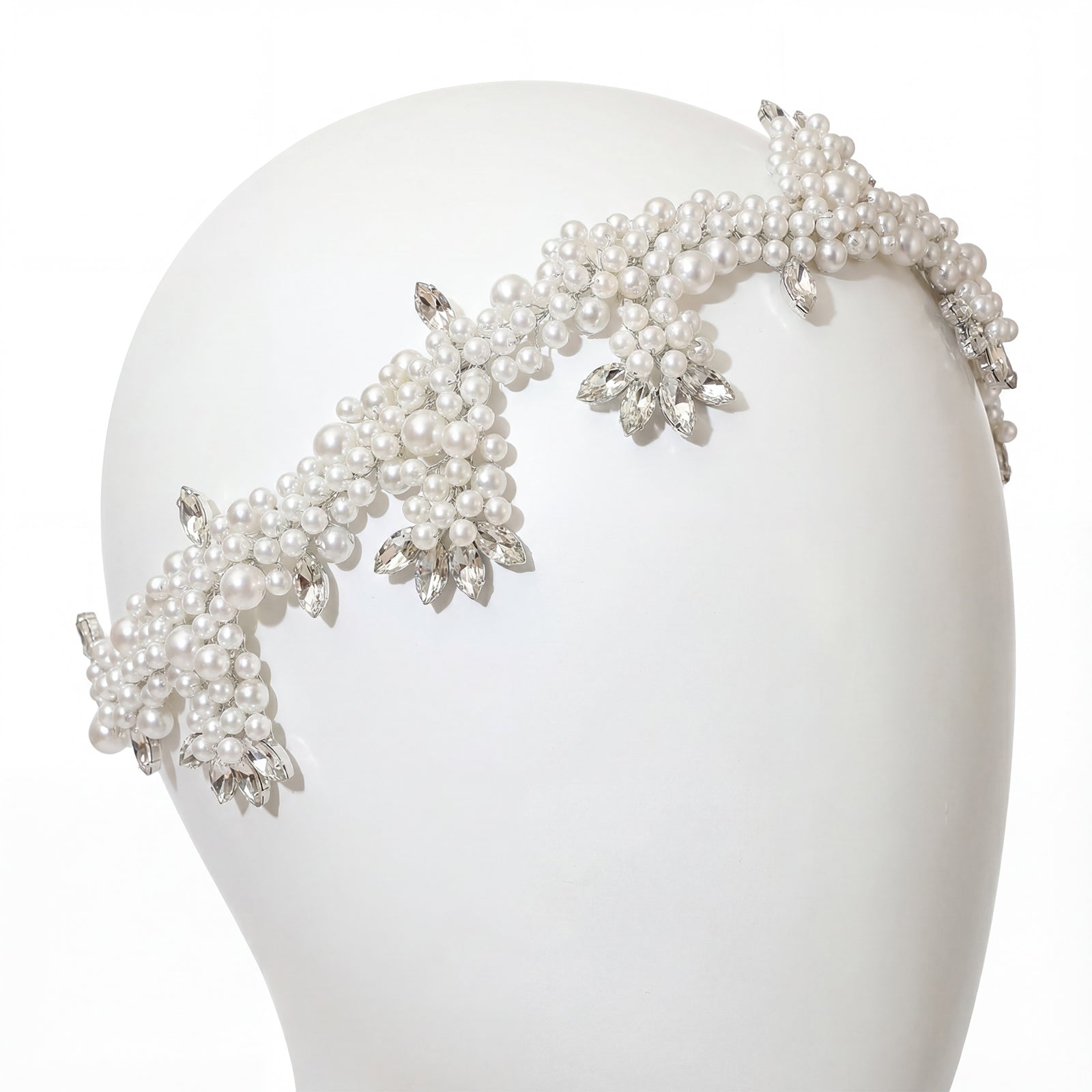 Elevate your look with this silver rhinestone and pearl headband, perfect for weddings, proms, and special occasions.