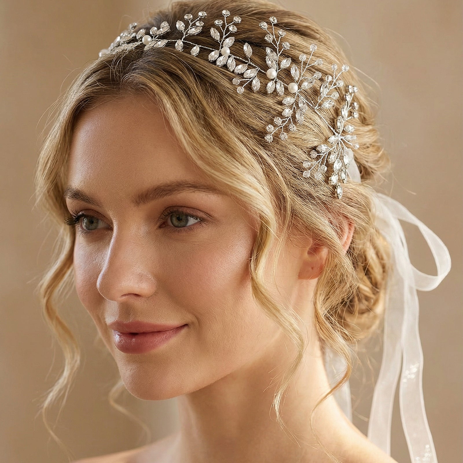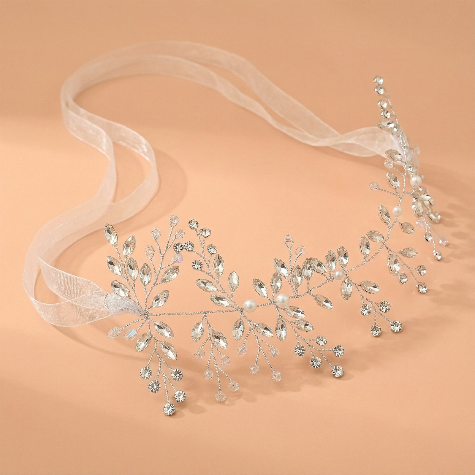 Elevate your look with this silver rhinestone and pearl headwear, perfect for weddings, proms, and special occasions.