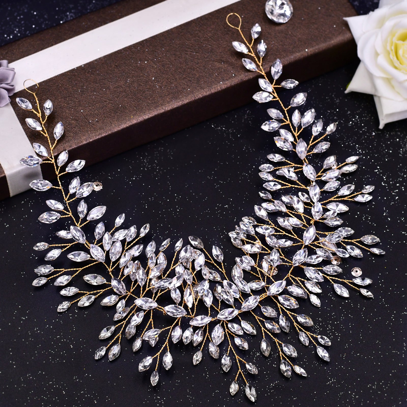BRIDELLA BHP237 Golden Handmade Crystal Rhinestones Silver Golden Wedding Headband Headpiece Jewelled Headband Wedding Hair Jewelry