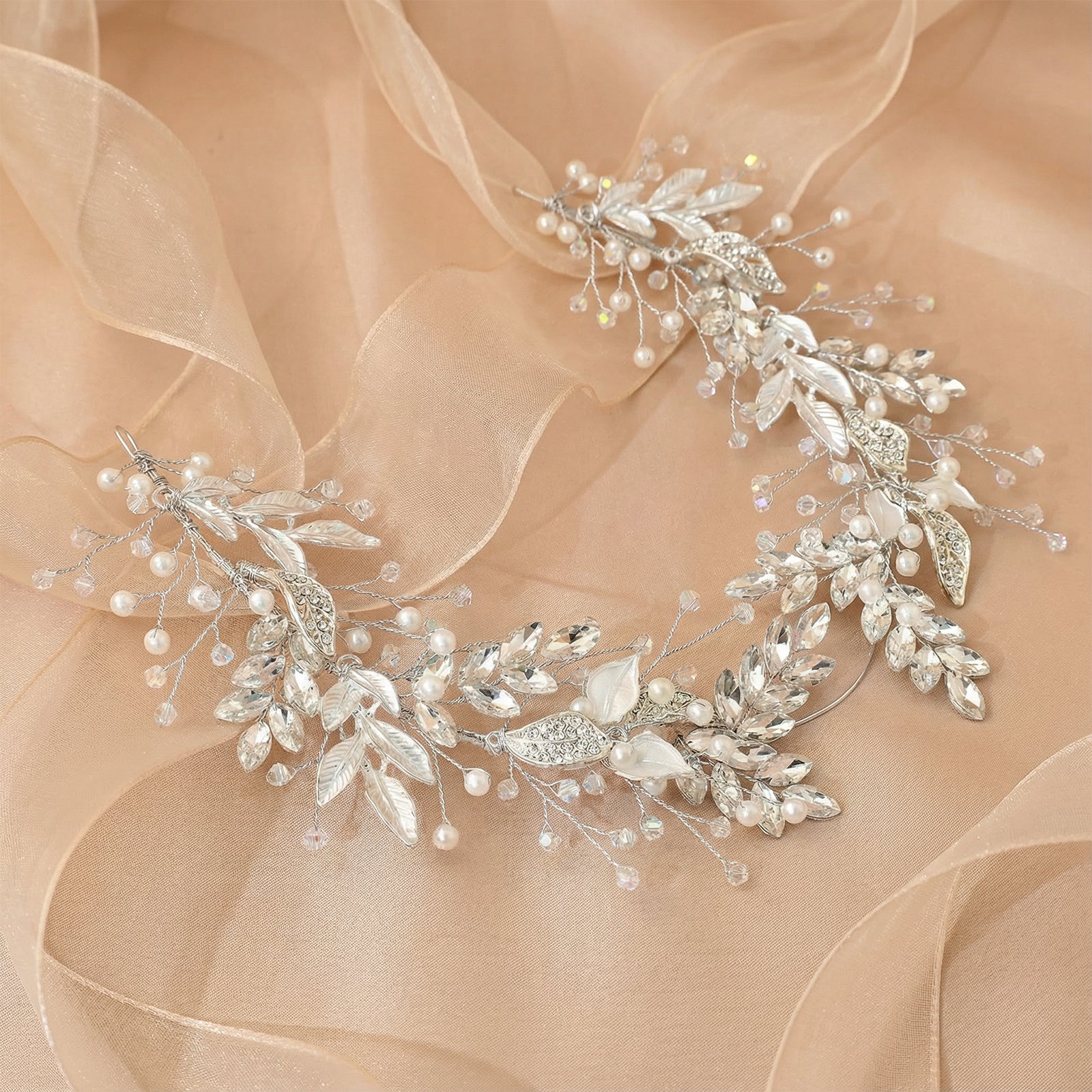 Elevate your look with this silver rhinestone and pearl headband, perfect for weddings, proms, and special occasions.
