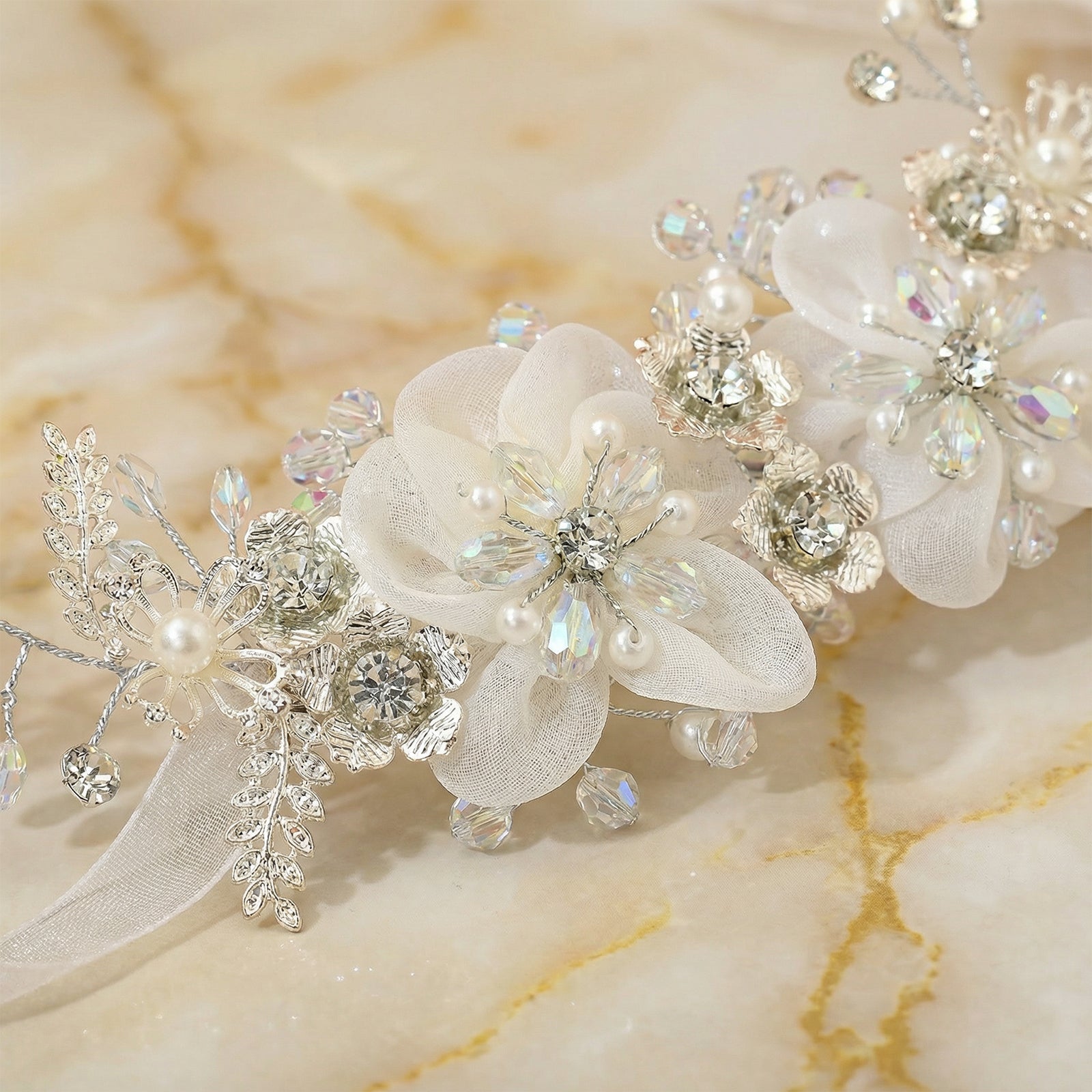 Elevate your look with this silver rhinestone and pearl headband, perfect for weddings, proms, and special occasions.