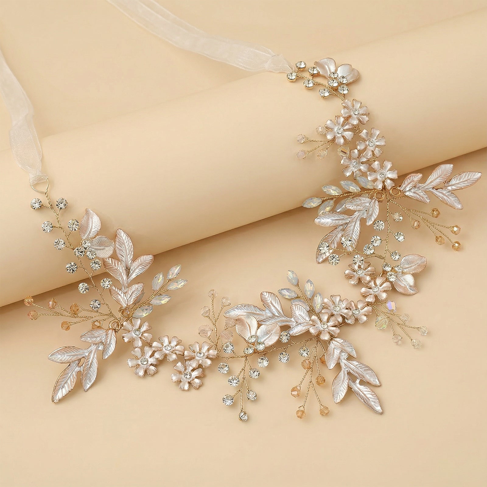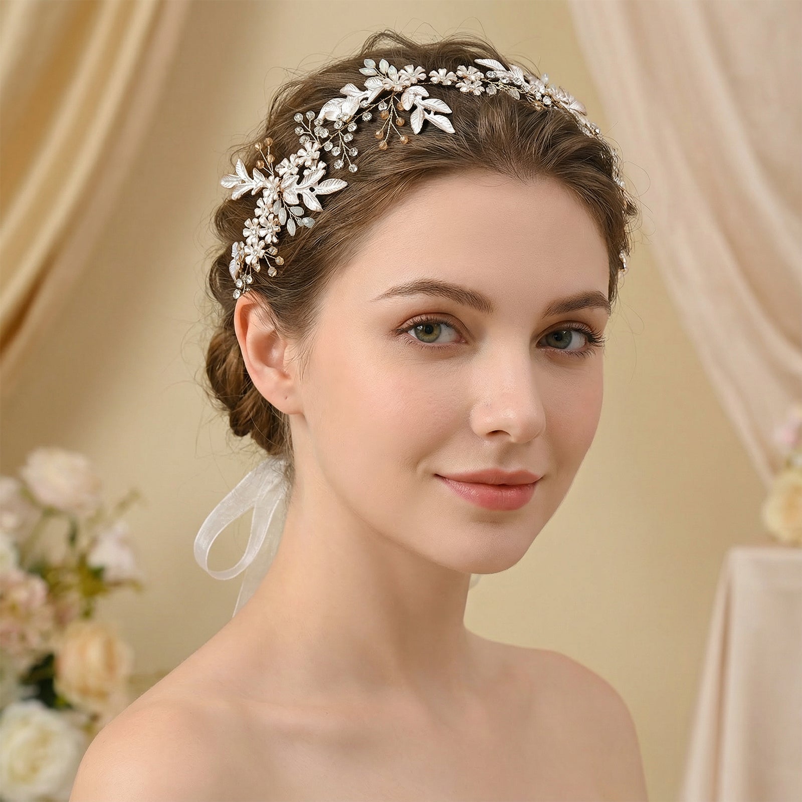 Elevate your look with this gold rhinestone and pearl headband, perfect for weddings, proms, and special occasions.