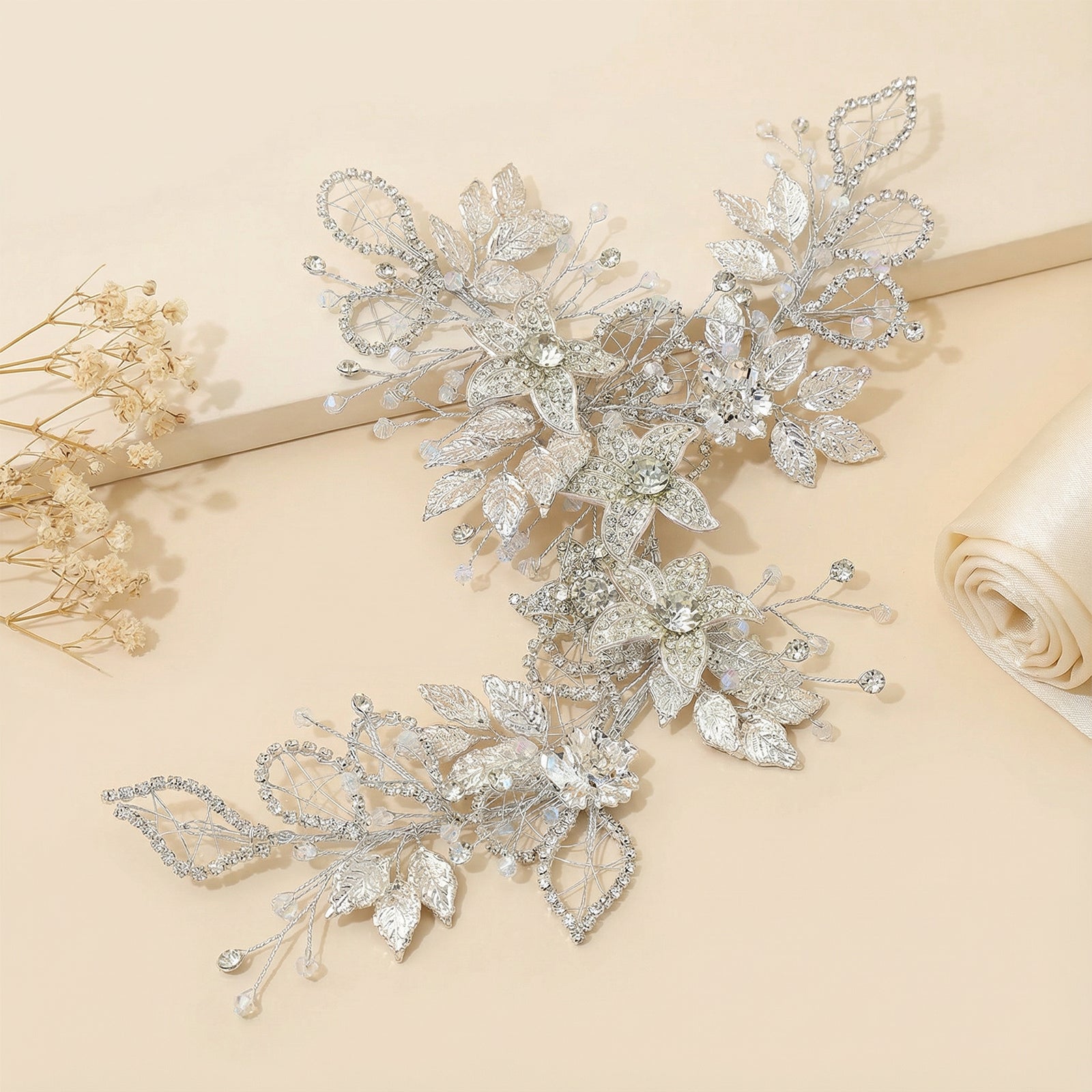 Elevate your look with this silver rhinestone and pearl headband, perfect for weddings, proms, and special occasions.