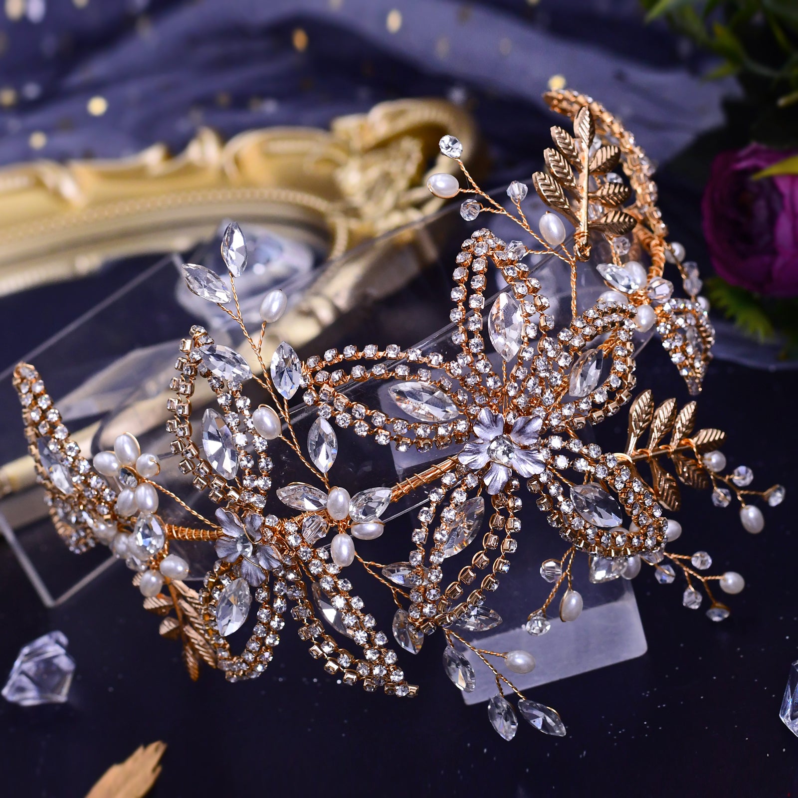 BRIDELLA BHP305 Alloy Leaves Bridal Headband Rhinestone Headpiece Wedding Hair Accessories Bridal Tiara Bride Hair Jewelry