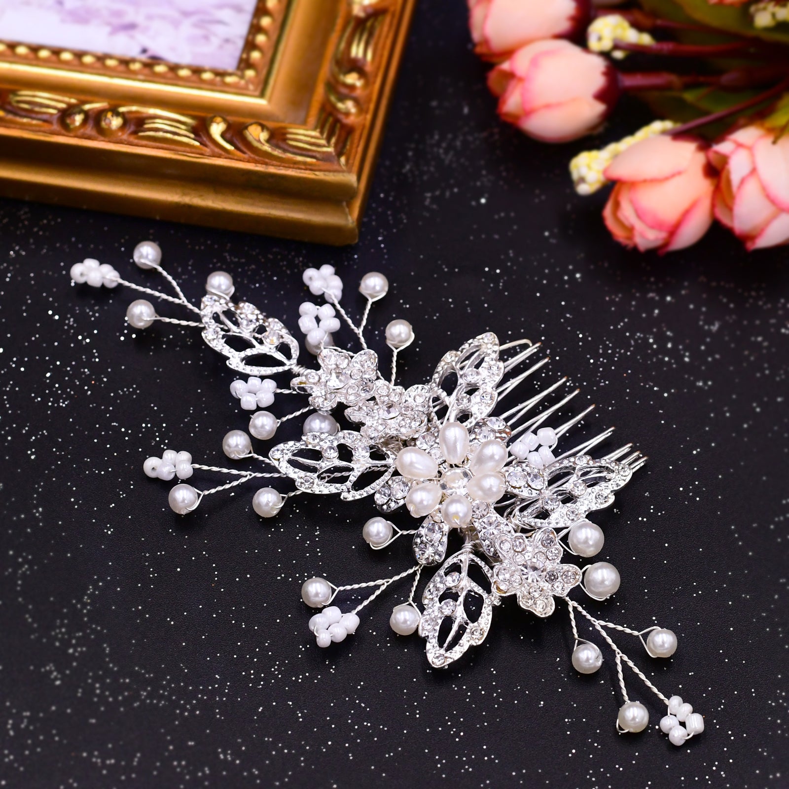 BRIDELLA BHP342 Alloy Inlaid with Diamonds Comb Crystal Bridal Wedding Combs Woman Hair Accessories Girls Bridesmaid Headwear Hair Jewelry Headdress