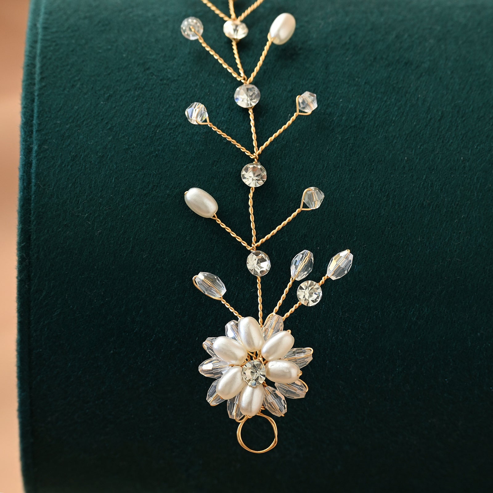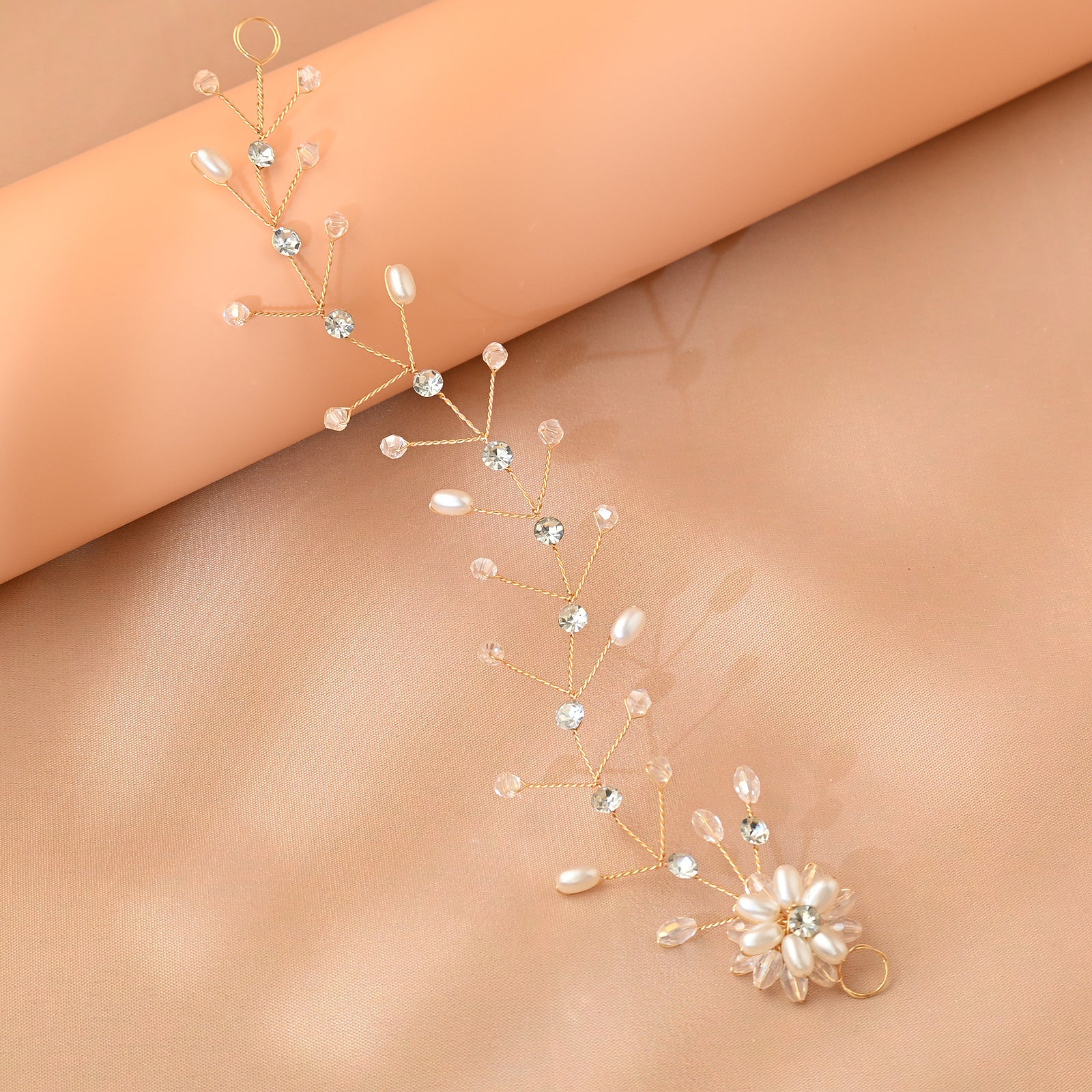 Elevate your look with this gold rhinestone and pearl headband, perfect for weddings, proms, and special occasions.