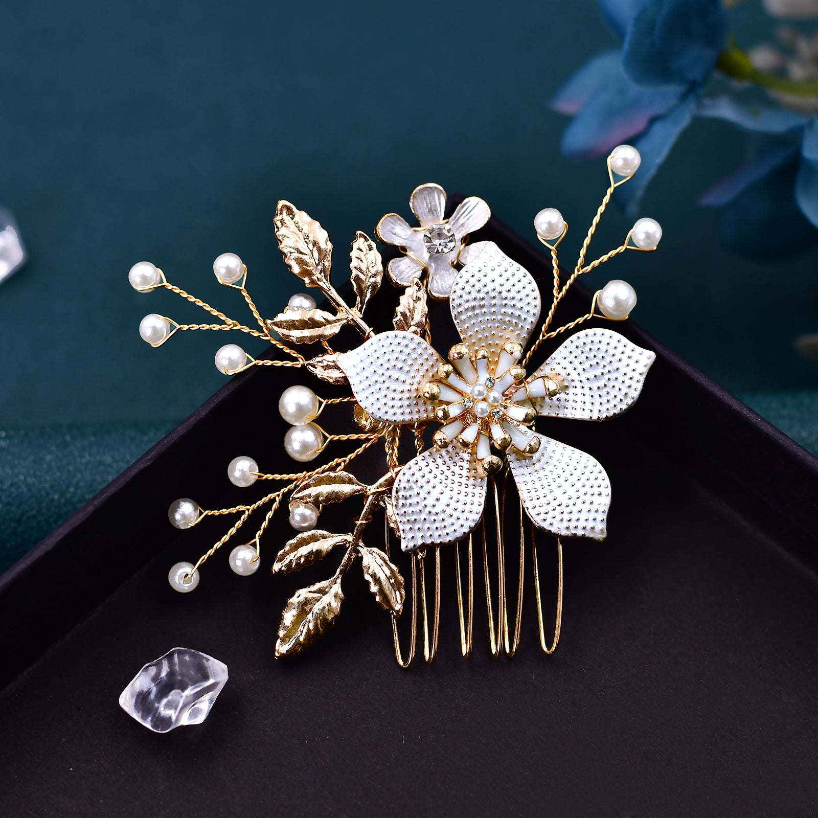 BRIDELLA BHP359 Alloy Flower Wedding Hair Comb for Bride Bridesmaid Headwear Handmade Pearl Woman Hair Clip Accessories Headdress