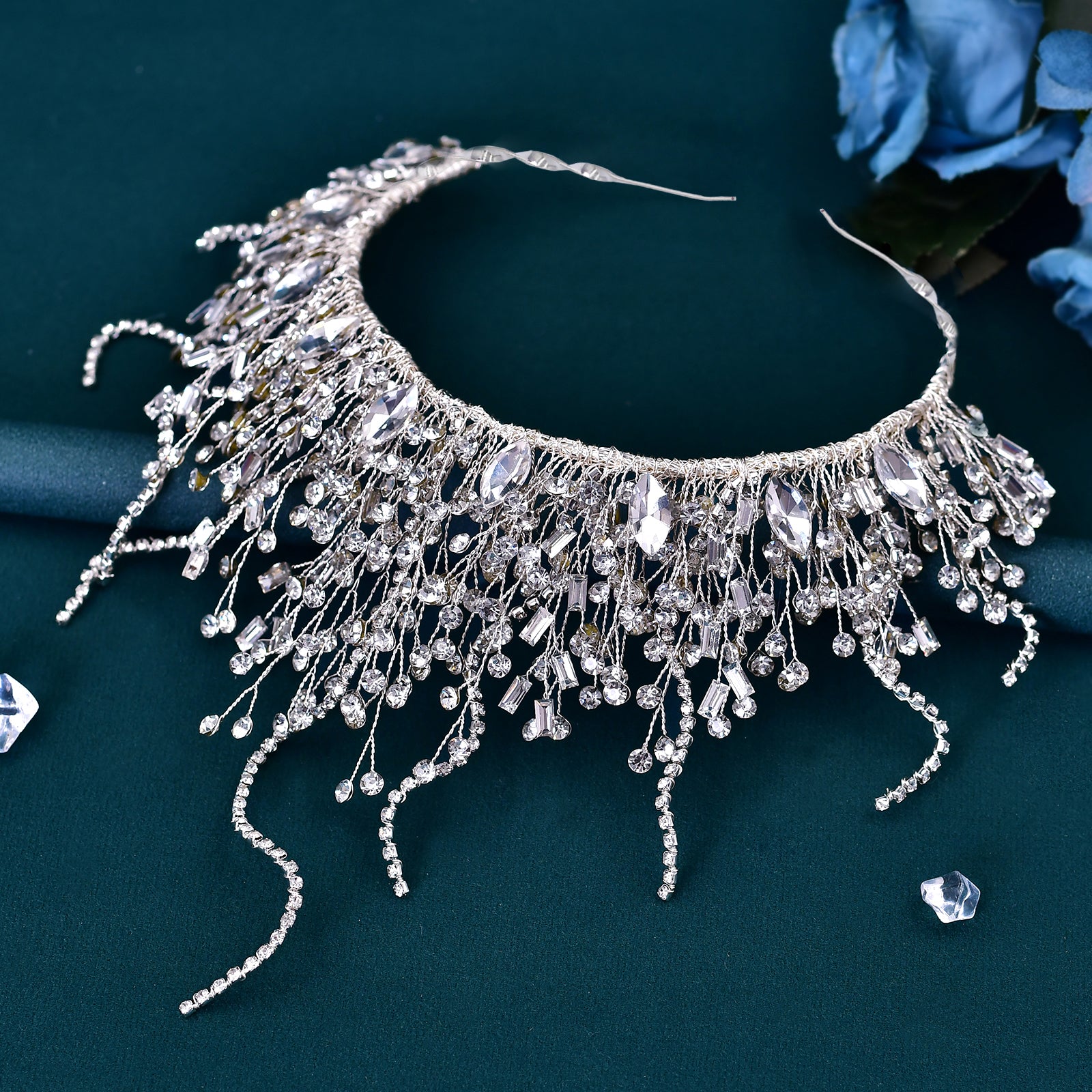 BRIDELLA BHP369 Bridal Crown Handmade Rhinestone Tiaras for Wedding Hair Accessories Woman Headband Party Bride Headdress