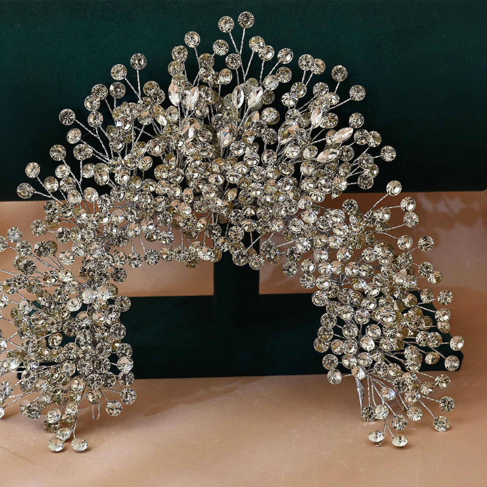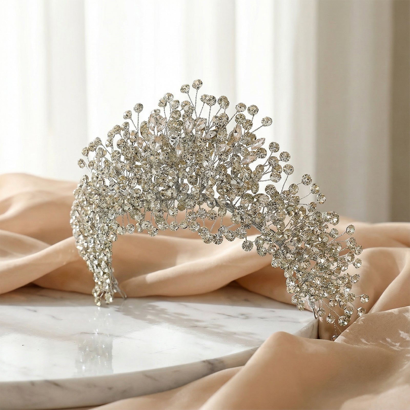 Elevate your look with this silver rhinestone crown, perfect for weddings, proms, and special occasions.