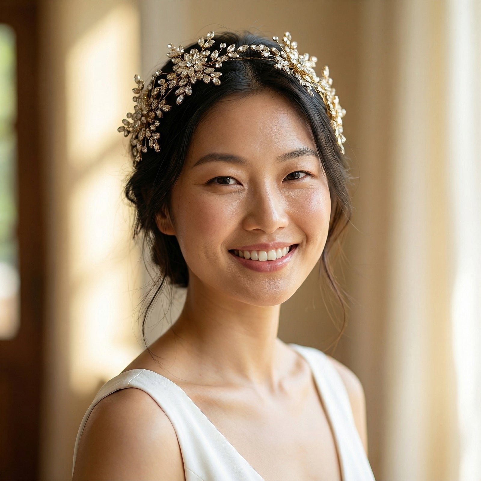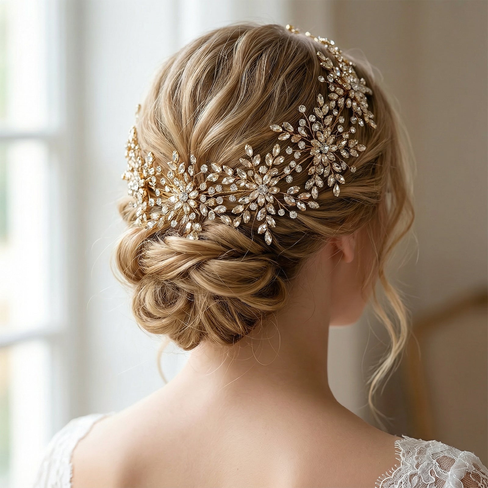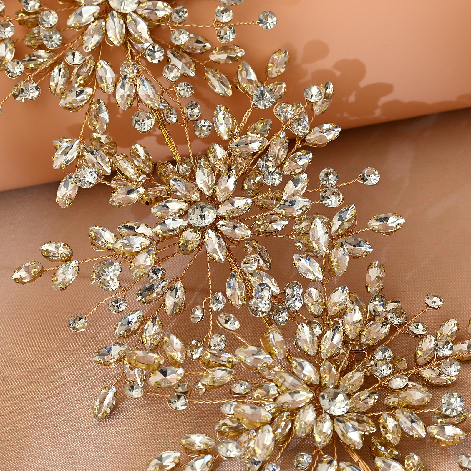 Elevate your look with this gold rhinestone crown, perfect for weddings, proms, and special occasions.