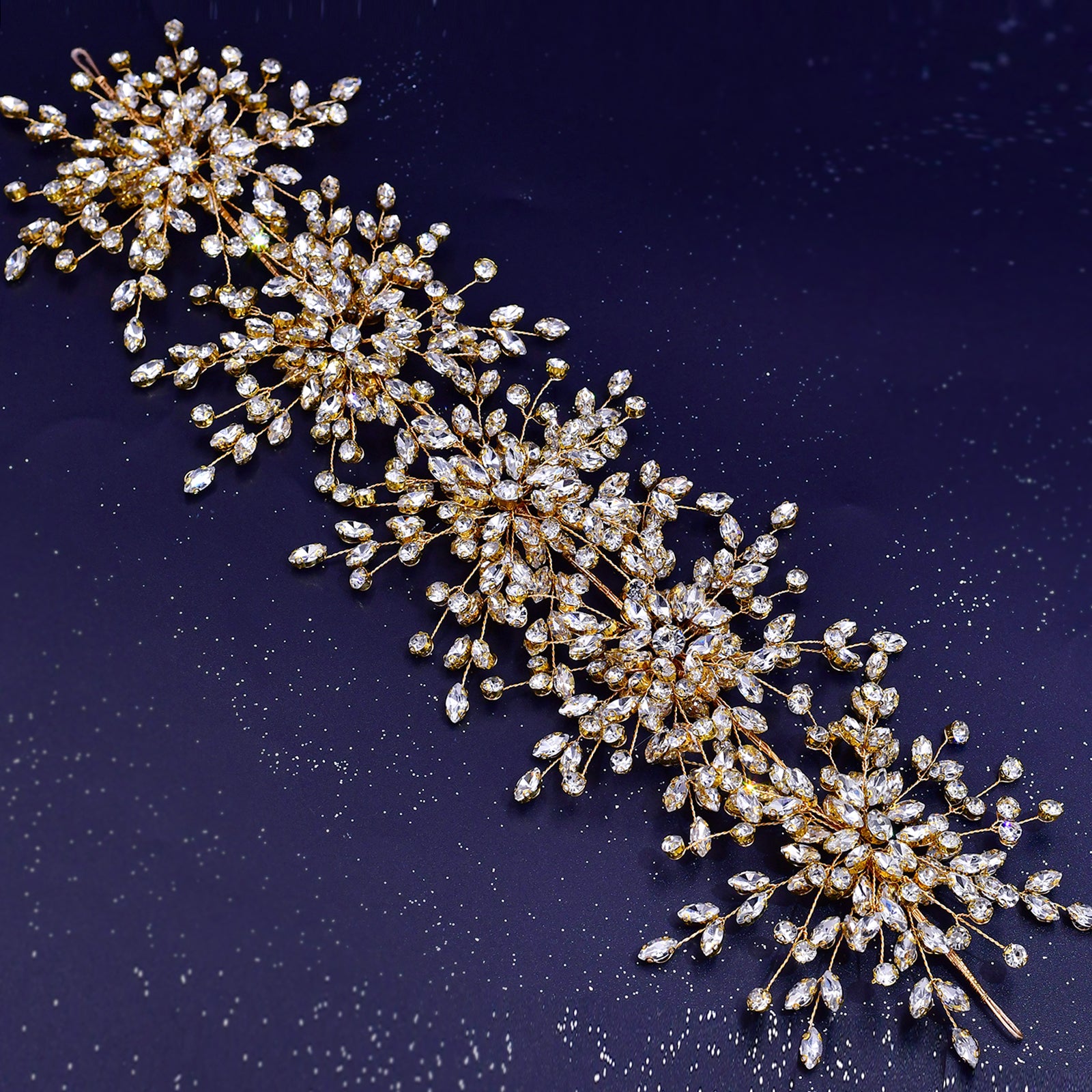 BRIDELLA BHP389 Gorgeous Bridal Tiara Rhinestone Wedding Headpiece for Woman Hair Accessories Handmade Bride Crown Head Ornament