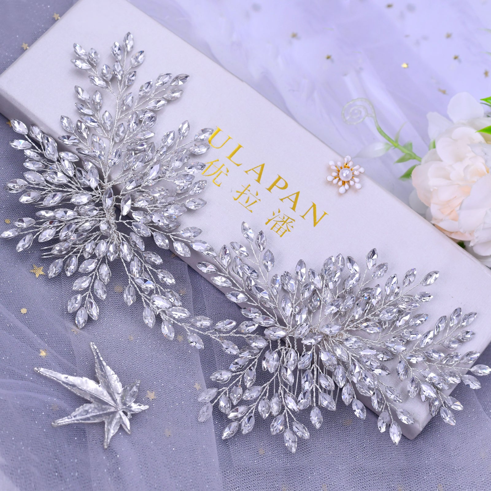 BRIDELLA BHP392 Rhinestone Headpiece Bridal Hair Clips Bride Double Combs Wedding Hair Accessories Woman Comb Bridal Headpiece