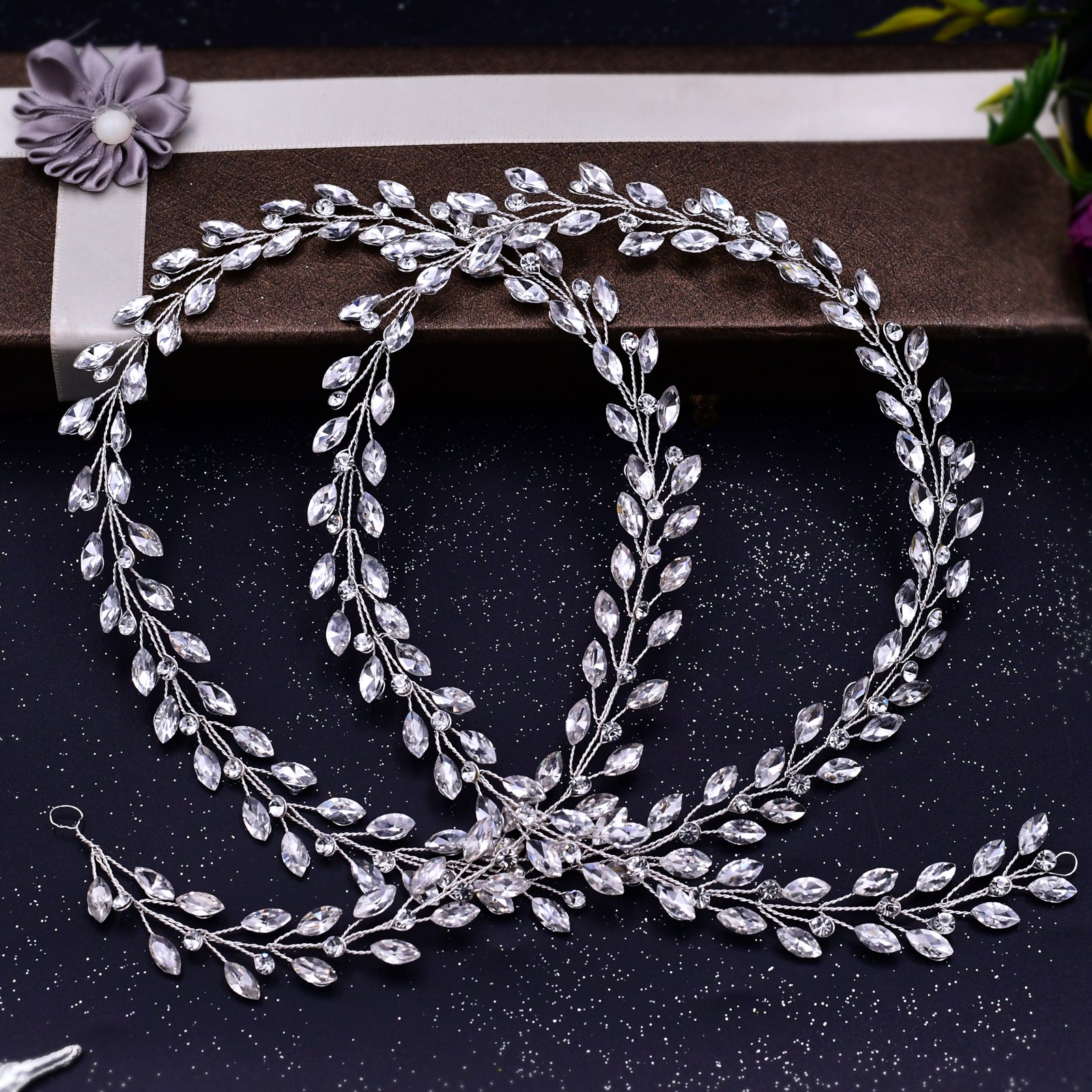 BRIDELLA BHP394 19.6/39.2 inches Handband Bohemian Bridal Hair Accessories Crystal Rhinestone Headpiece Bridal Headband Wedding Hair Jewelry