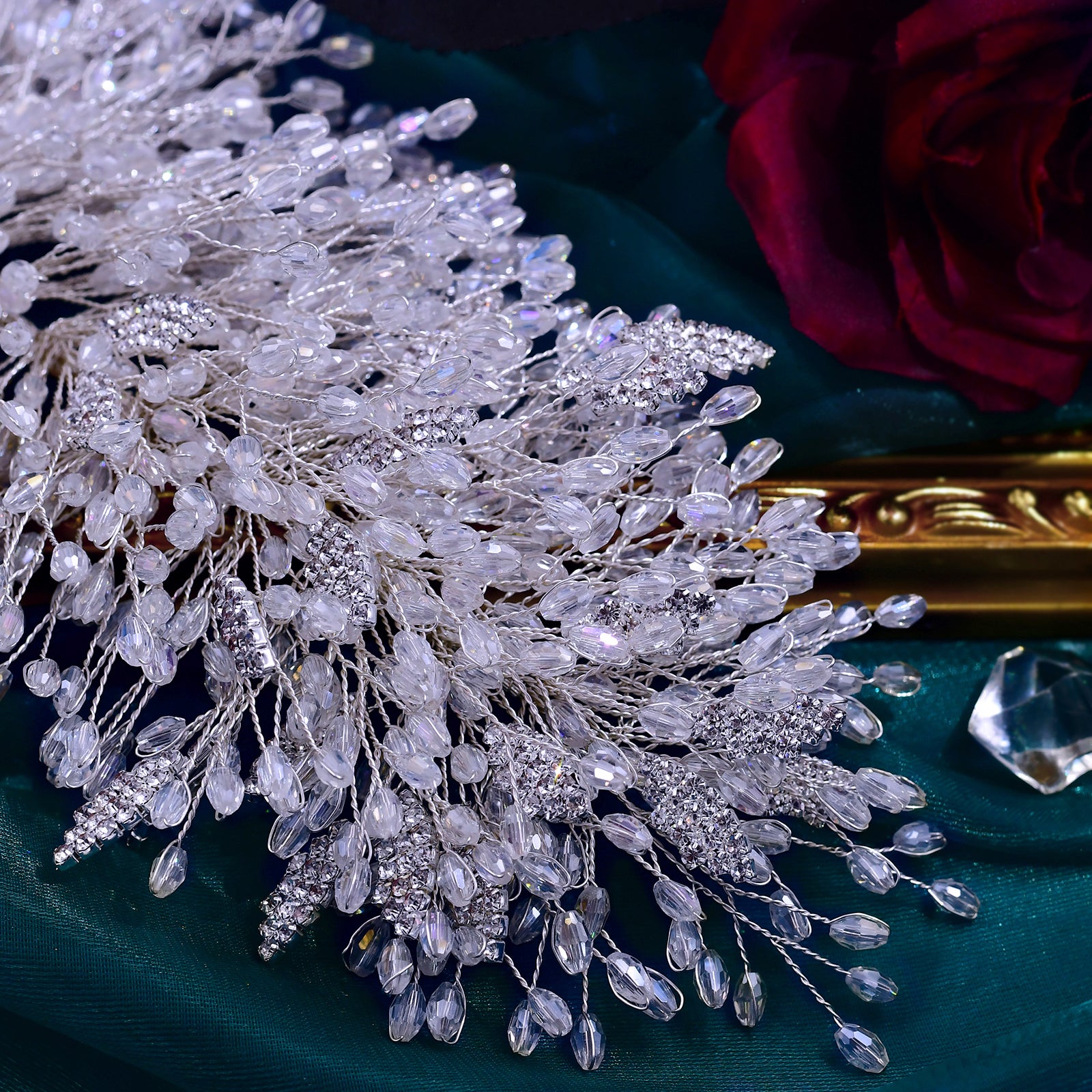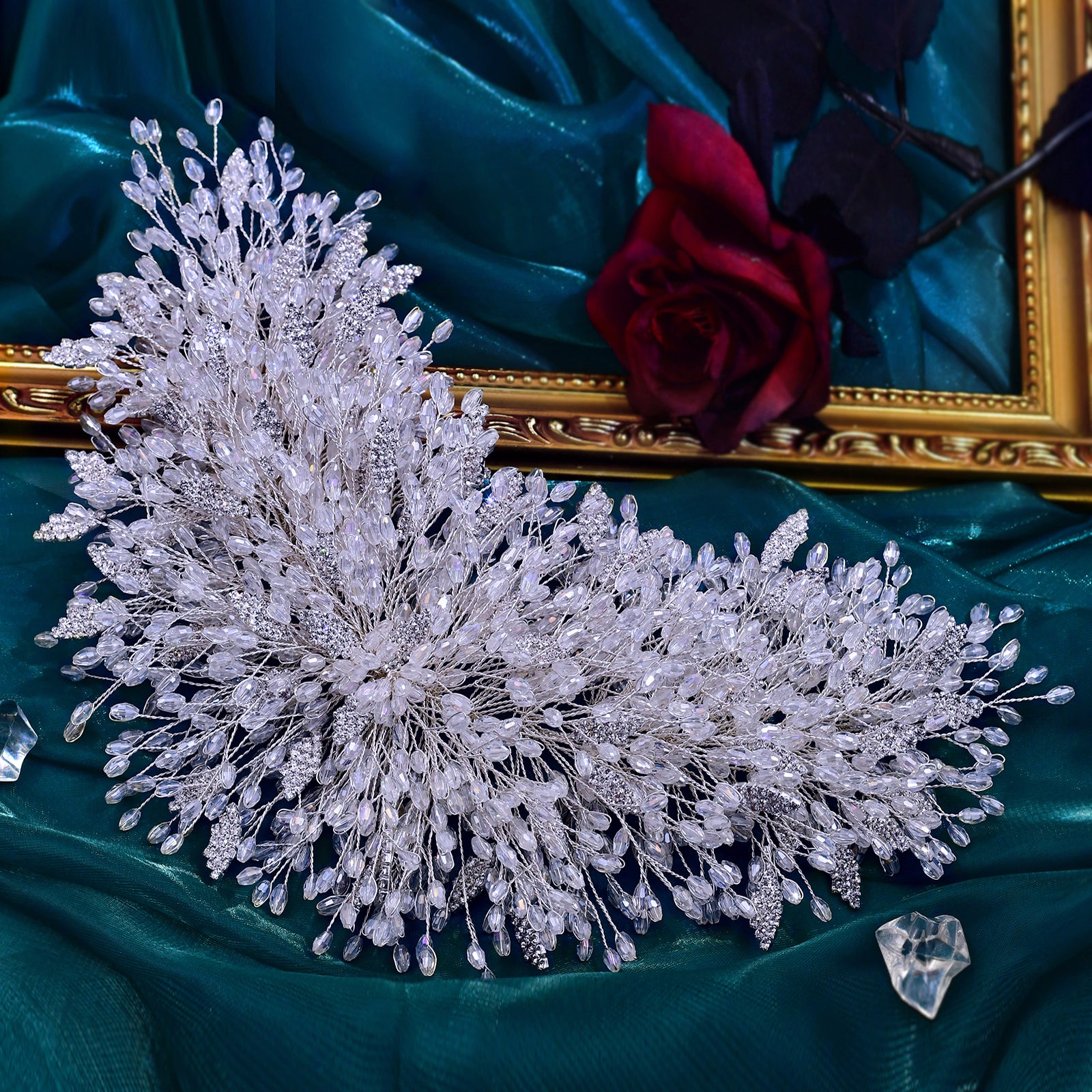 BRIDELLA BHP397 Luxury Bride White Crystal Headpiece Wedding Crowns Pageant Big Rhinestone Women Tiara Bridal Wire Headband