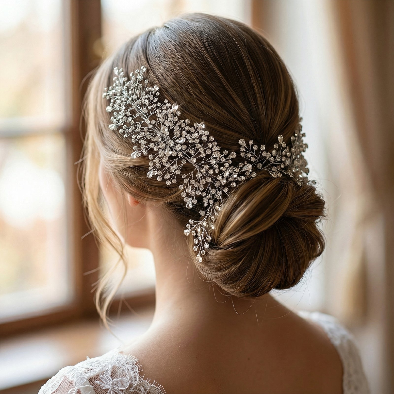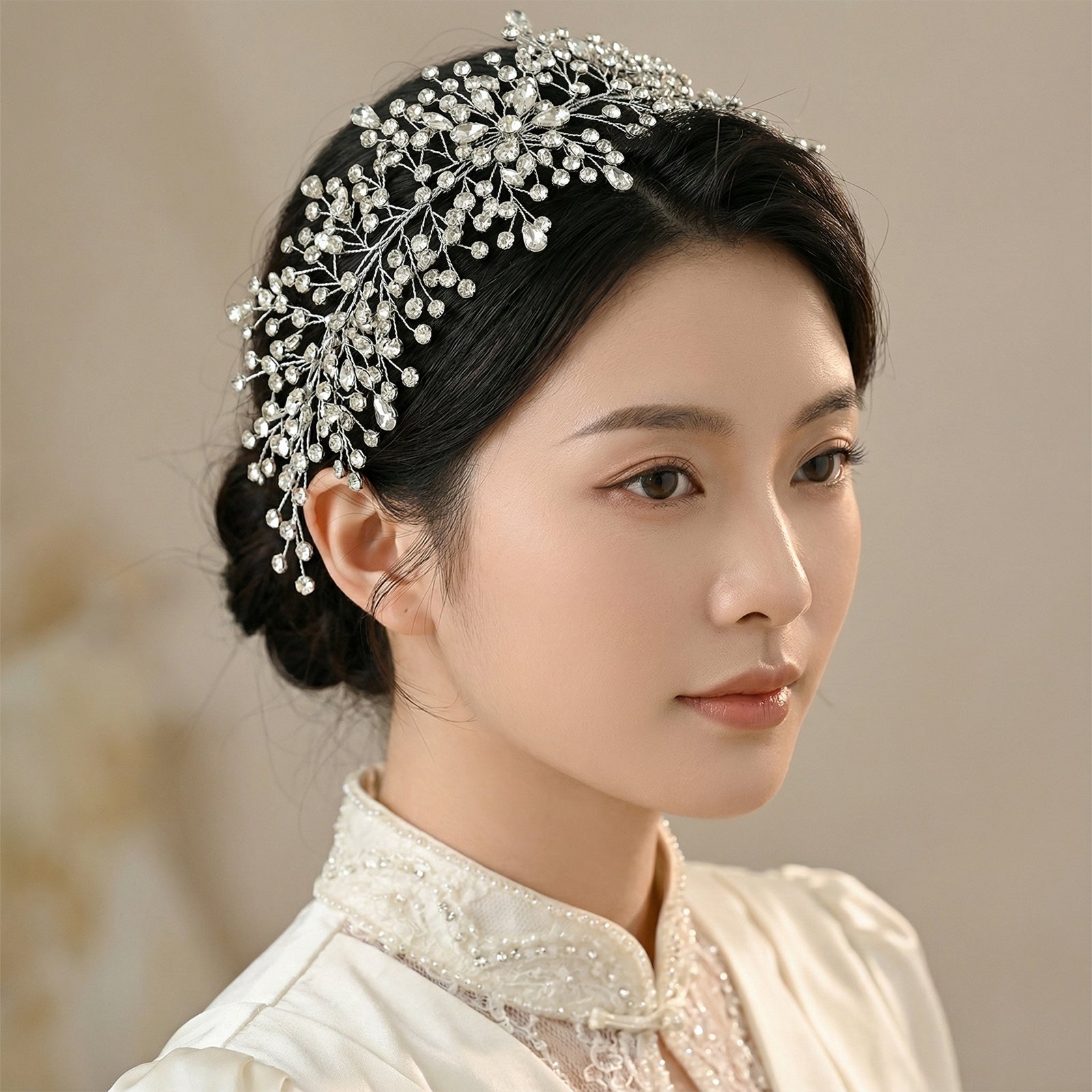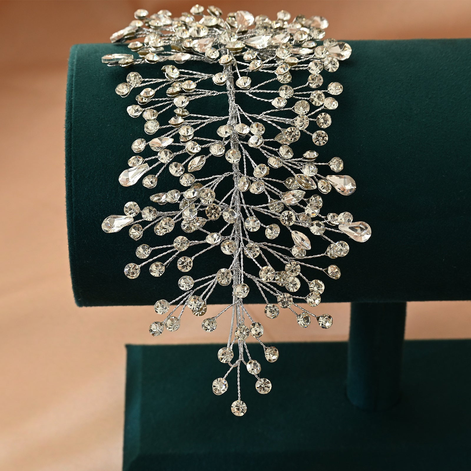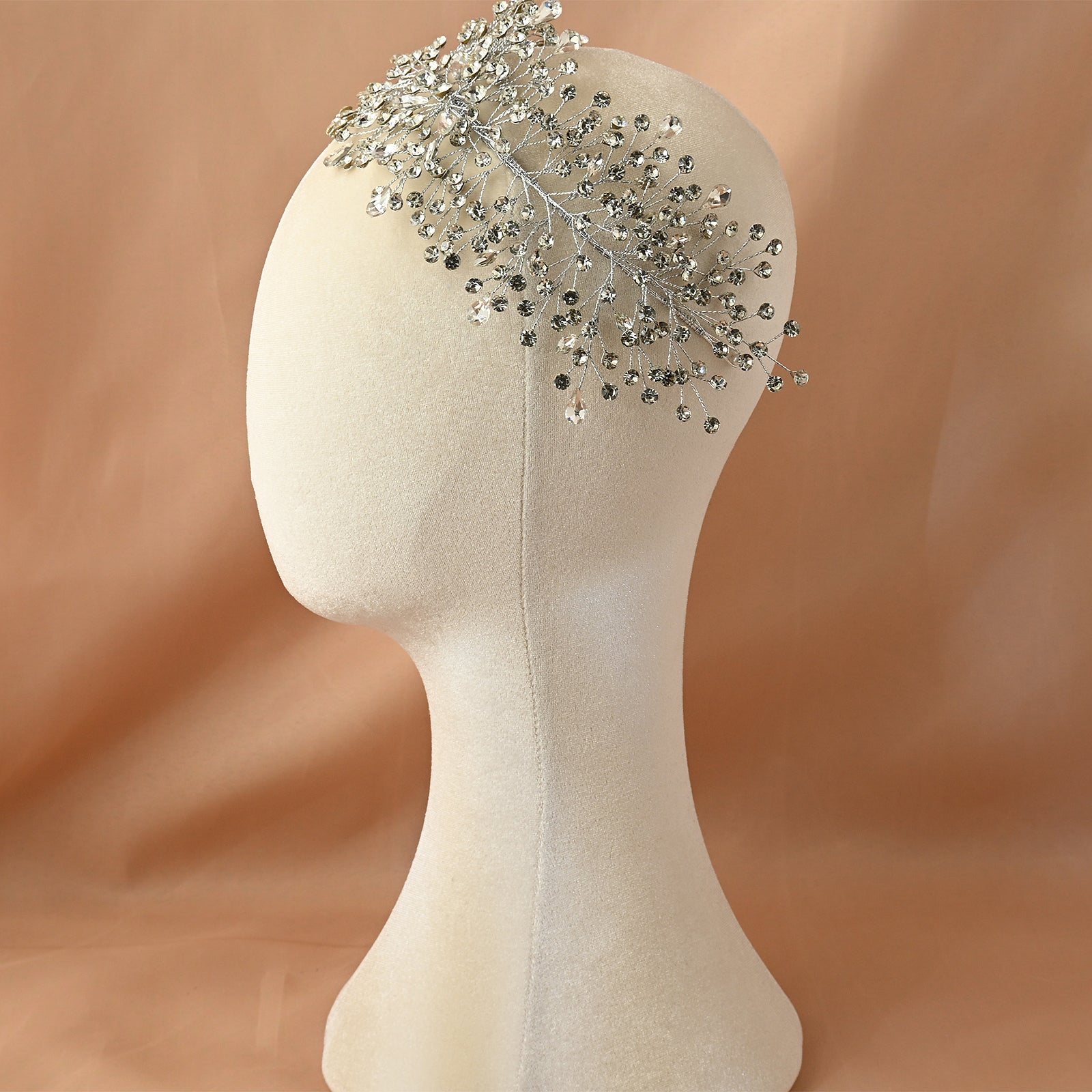 Elevate your look with this silver rhinestone crown, perfect for weddings, proms, and special occasions.