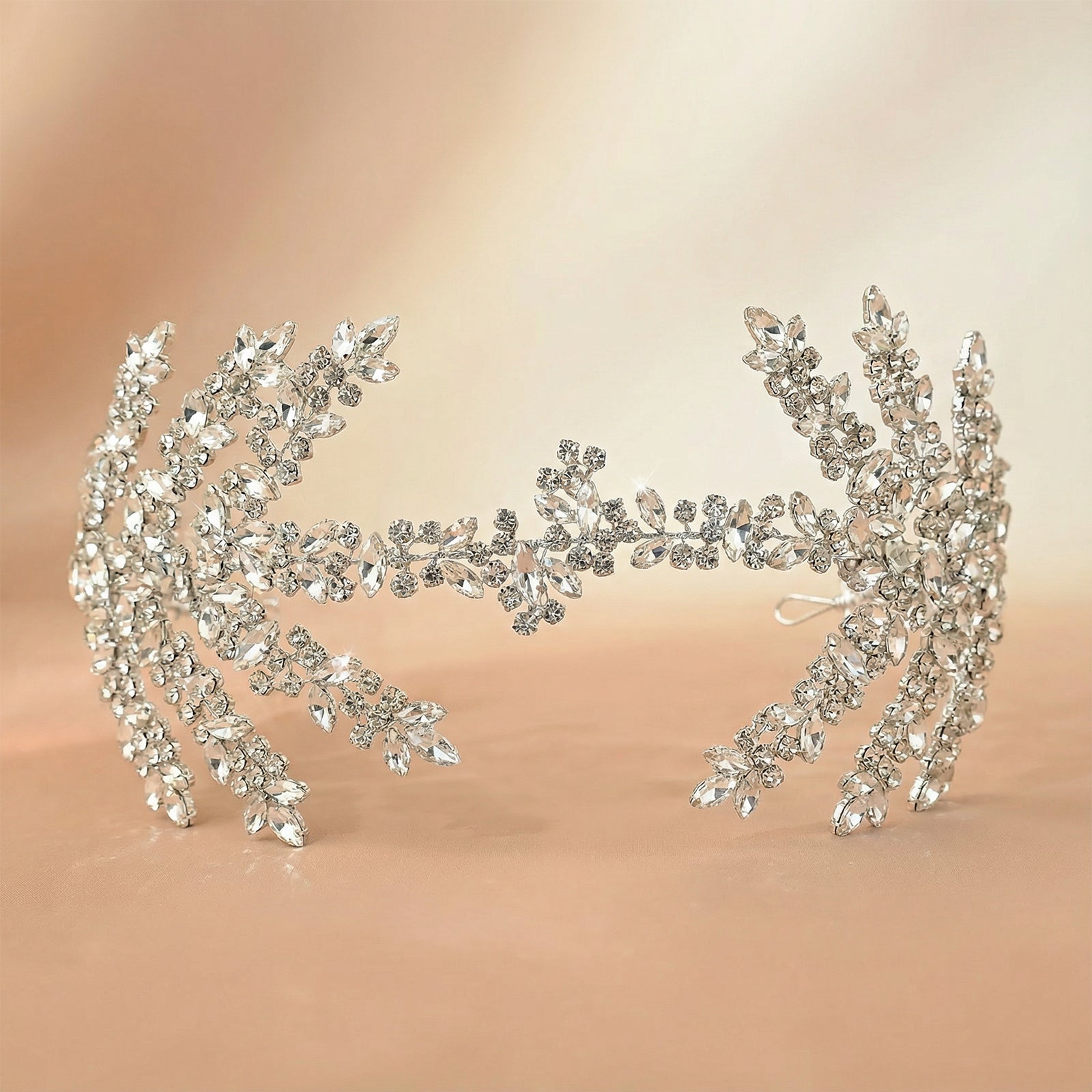 Elevate your look with this silver rhinestone crown, perfect for weddings, proms, and special occasions.