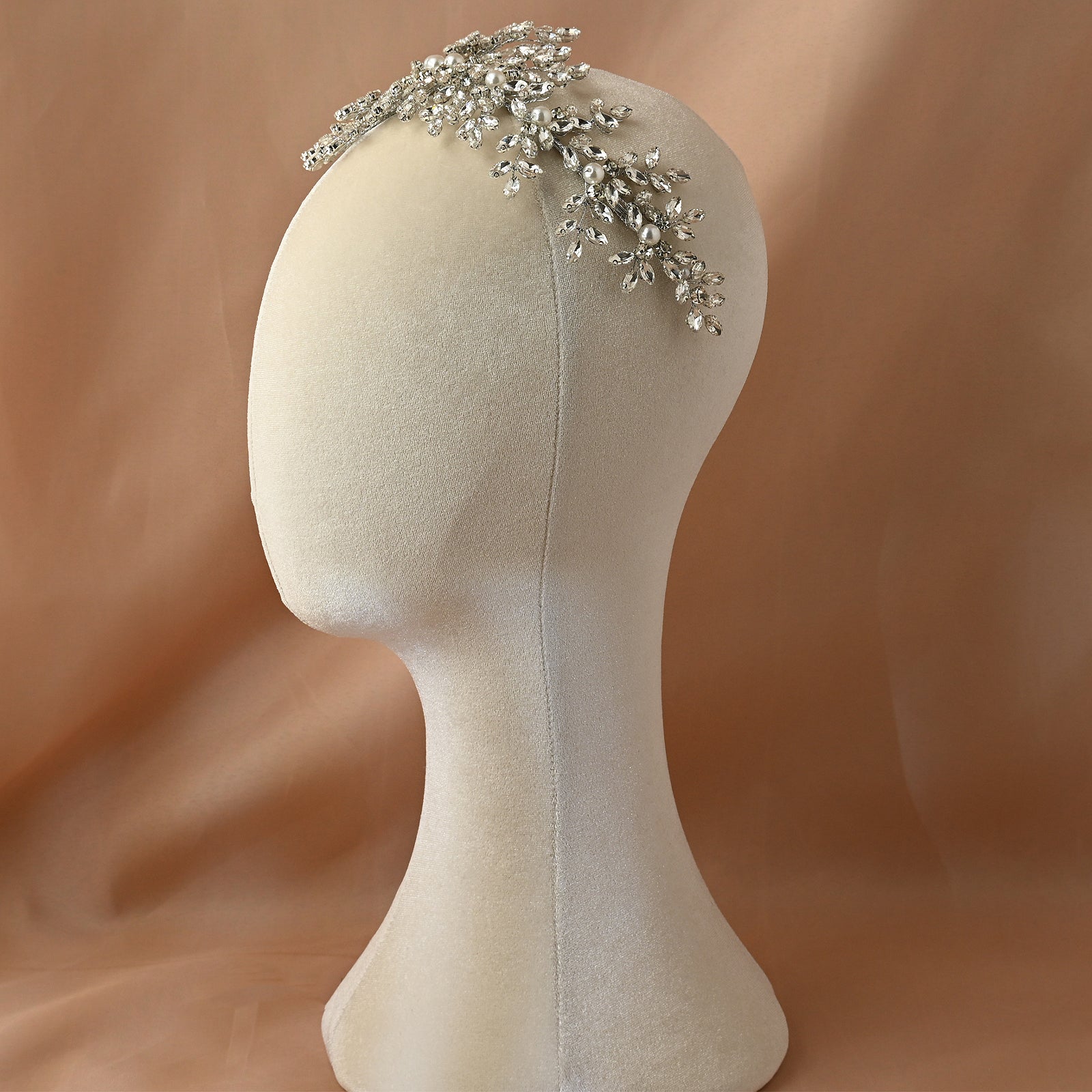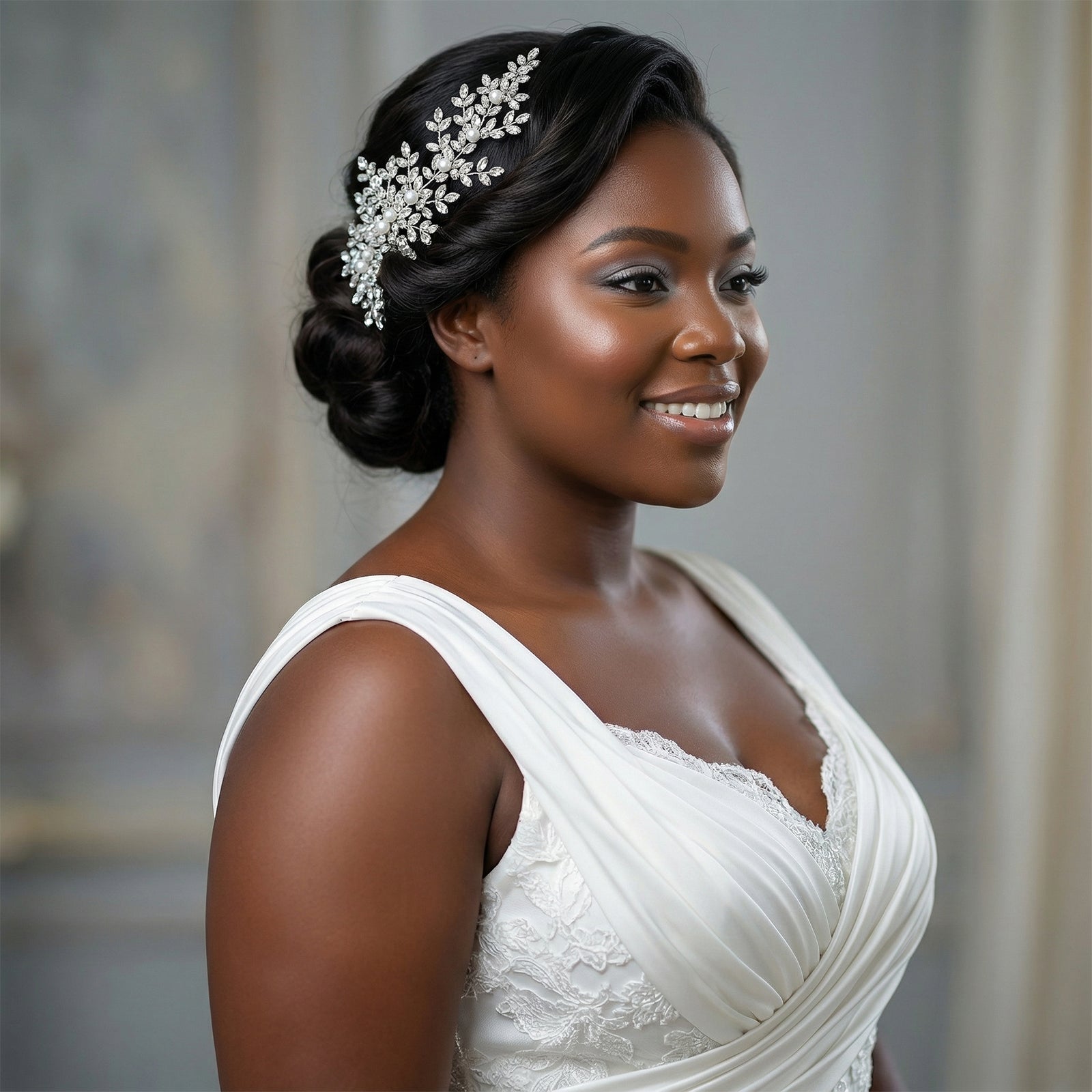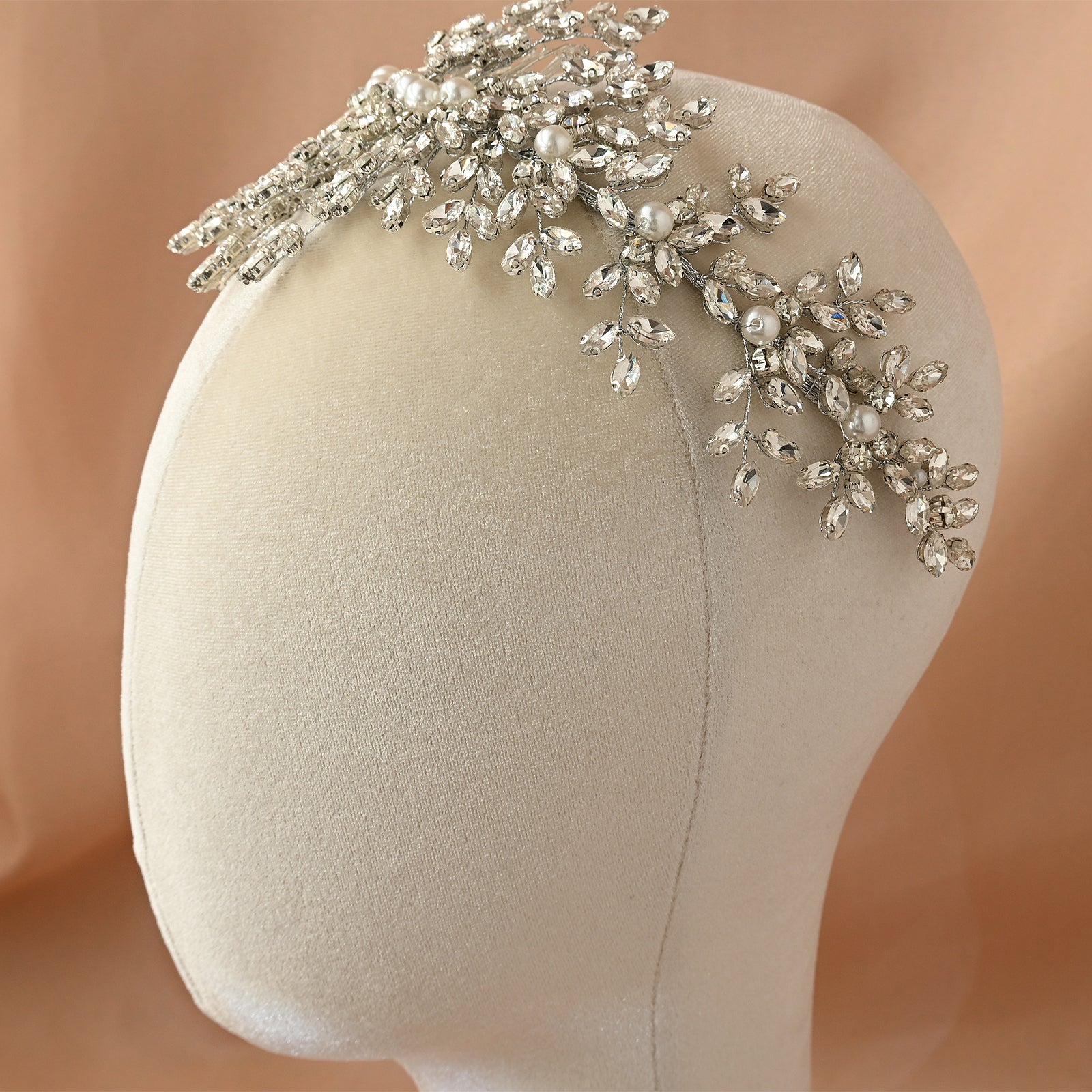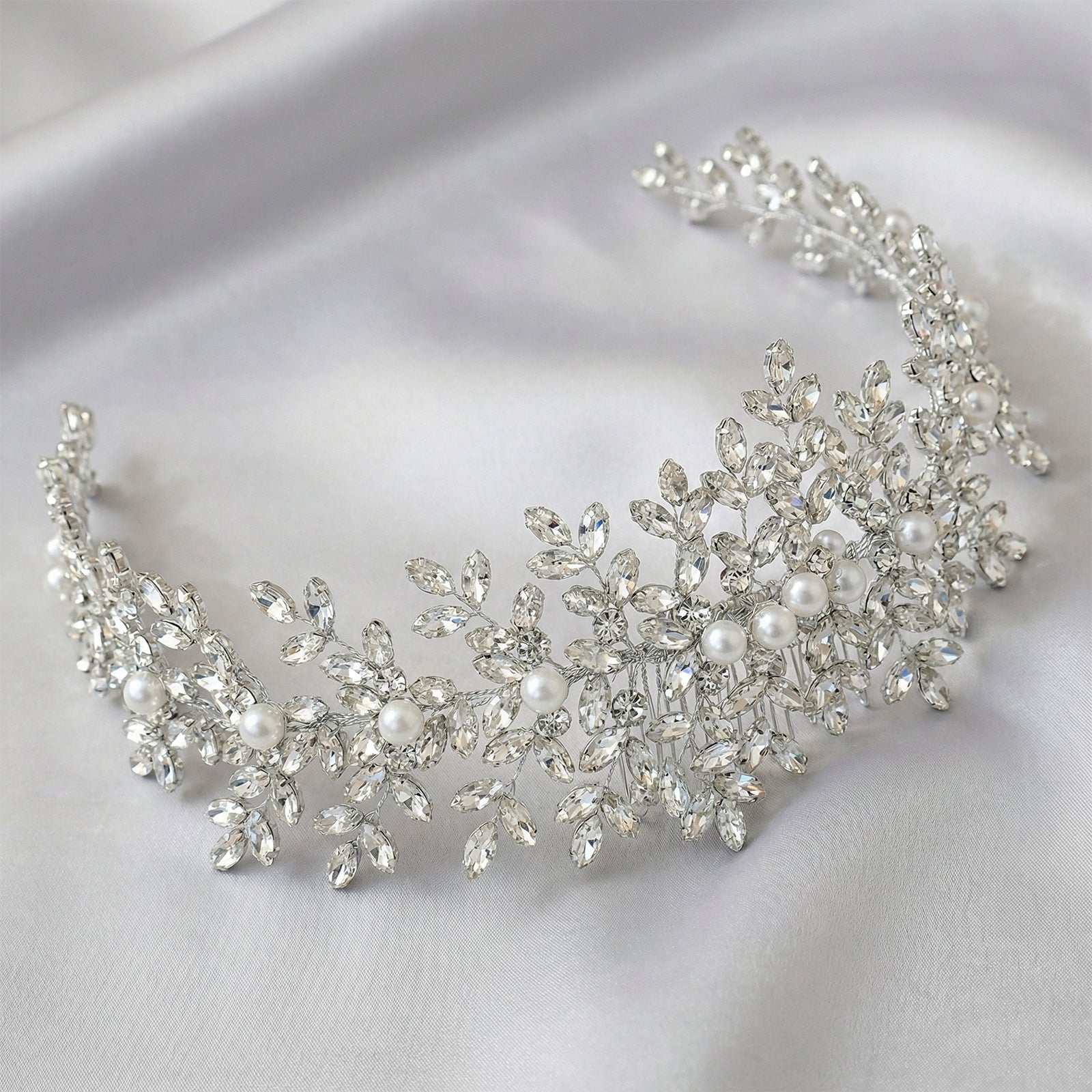 Elevate your look with this silver rhinestone and pearl hair comb, perfect for weddings, proms, and special occasions.