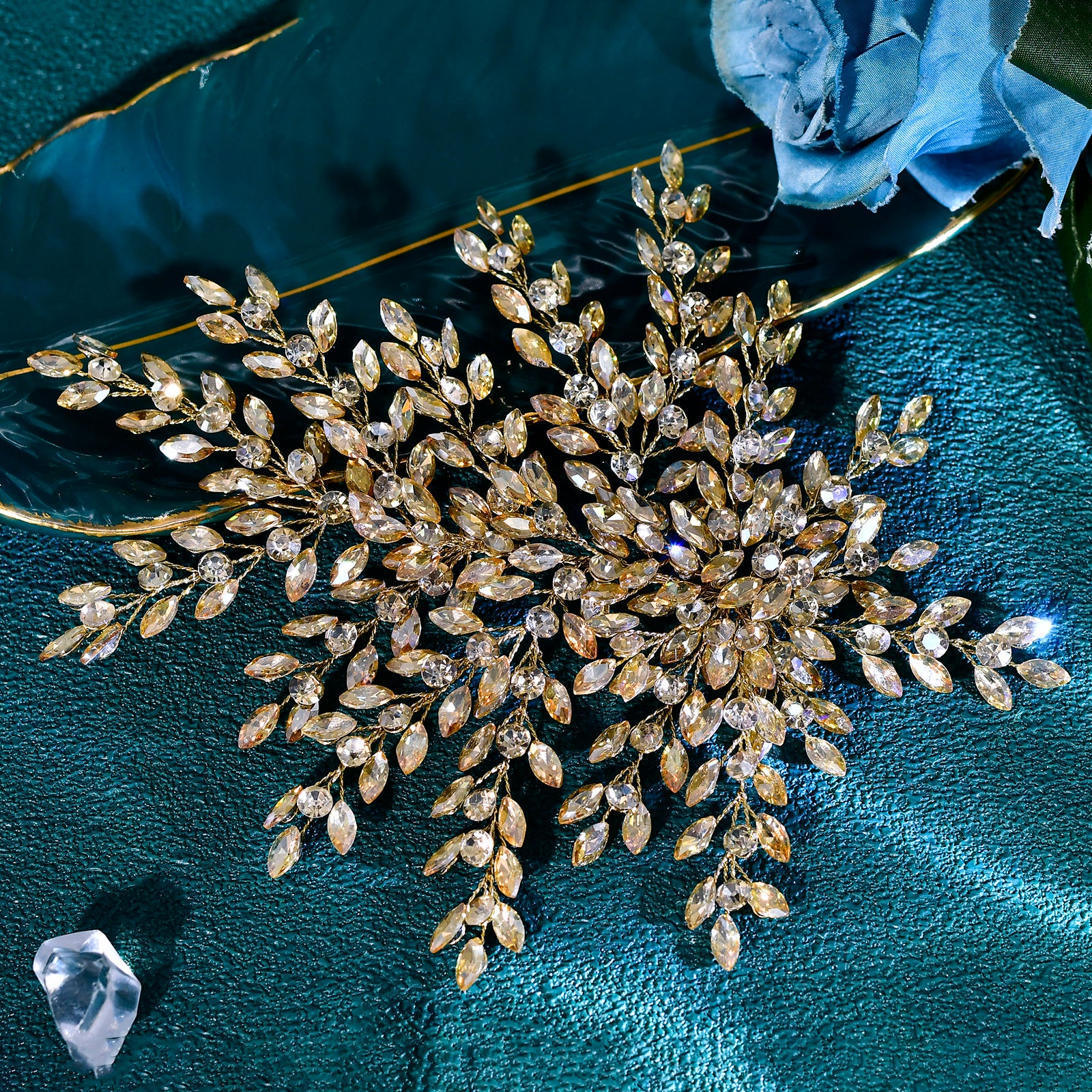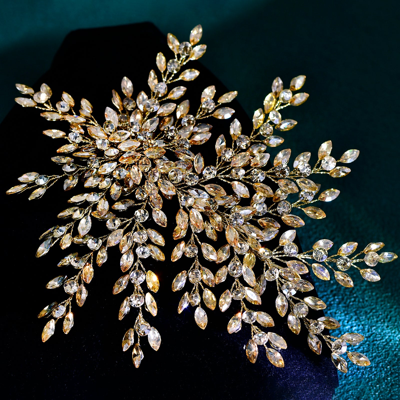 BRIDELLA BHP438 Bling Bridal Head-wear Champagne Luxury Leaf Wedding Headband Bridal Hair Accessories Fascinates for Women Headdresses