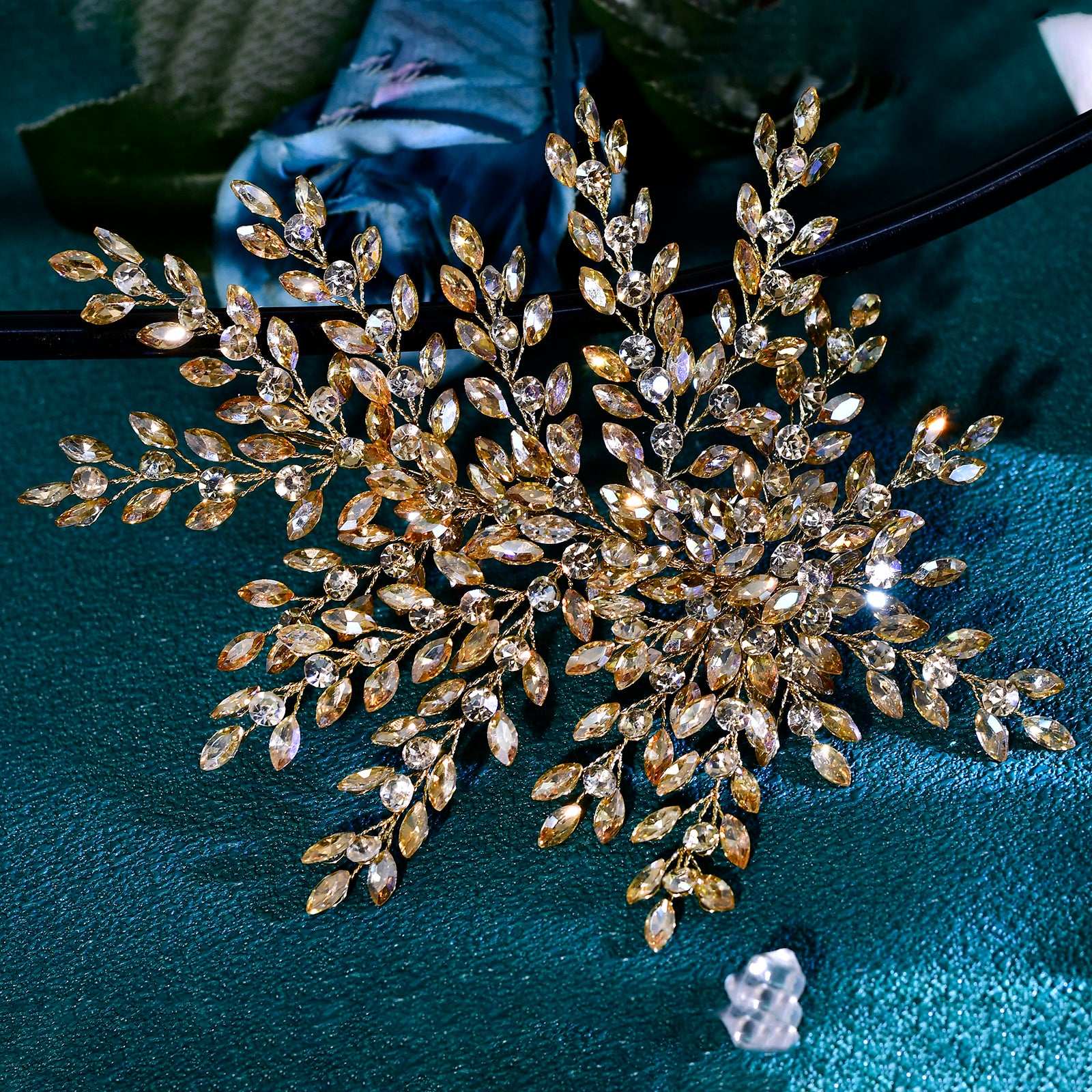 Material Composition: Rhinestones, Pearls, Crystals, Beading, Alloy, Resin flowers, Organza flowers