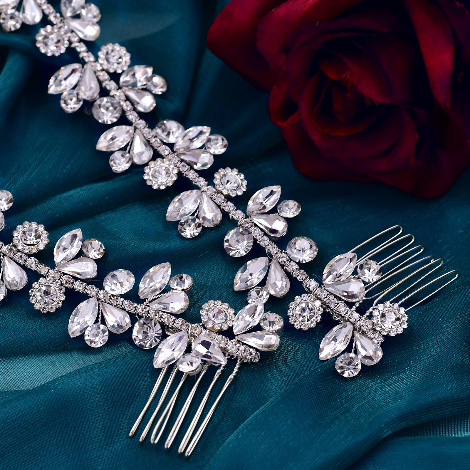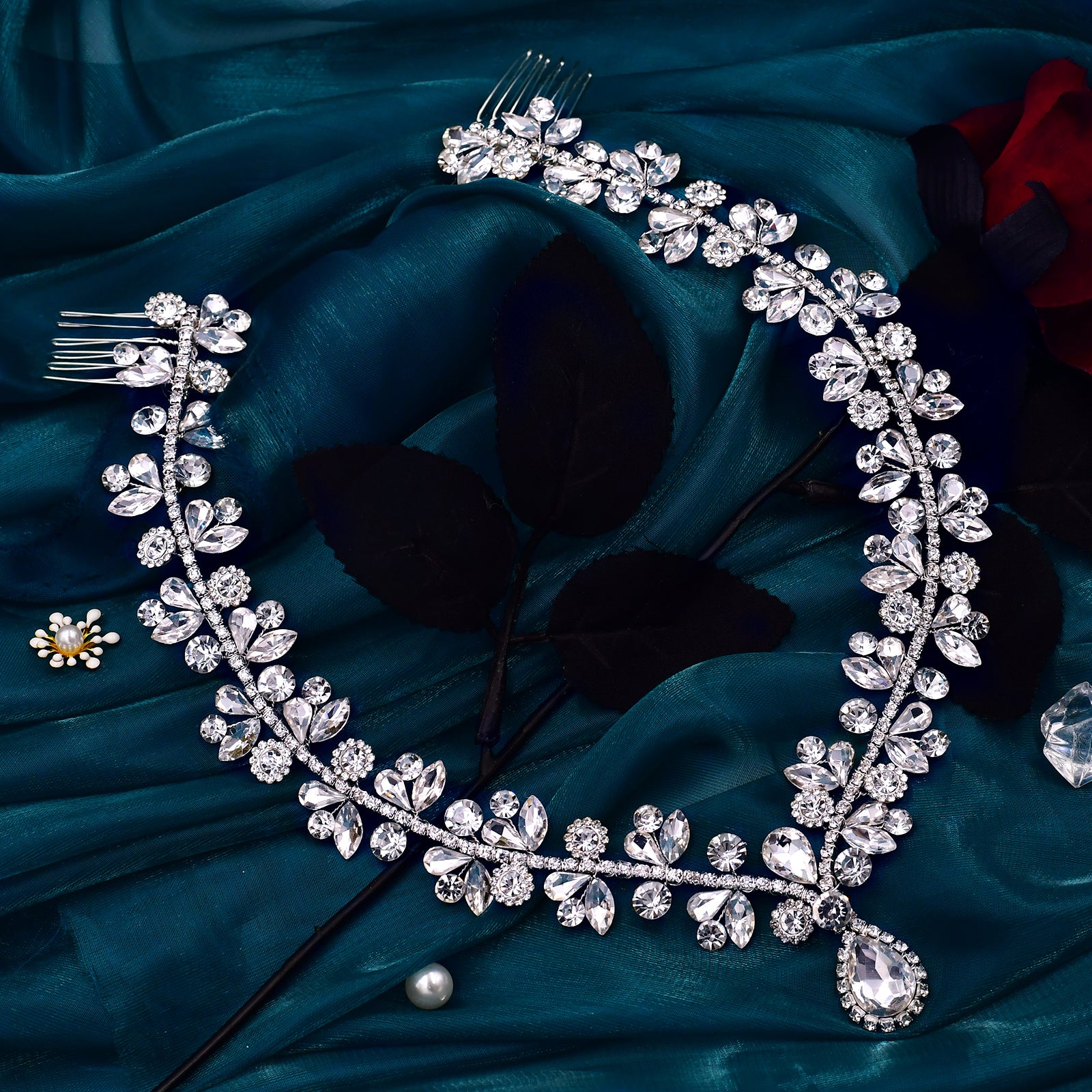 BRIDELLA BHP470 Forehead Bridal Headband Rhinestone Headpiece for Woman Bride Water Drop Headwear Wedding Hair Accessories