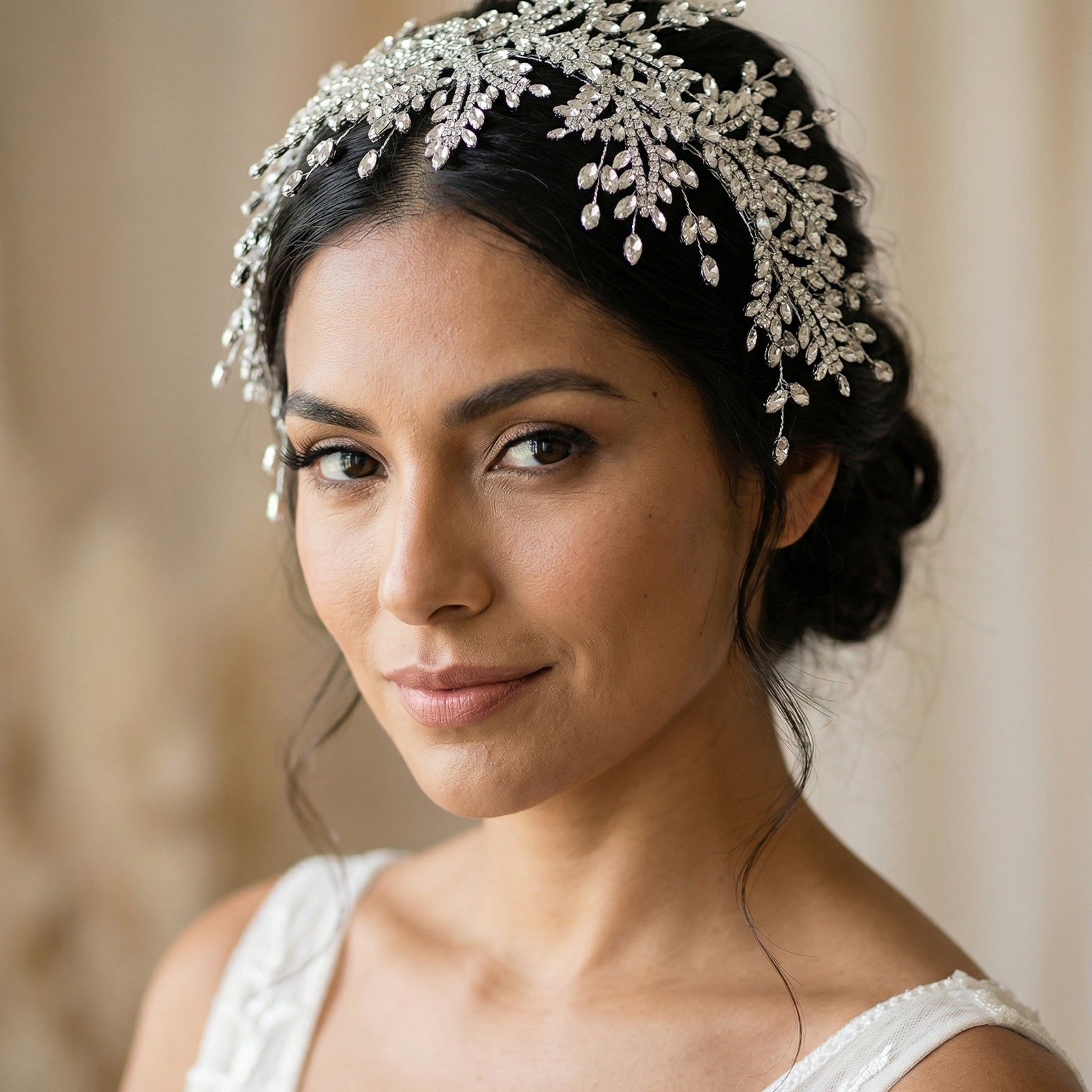 Elevate your look with this silver rhinestone tiara, perfect for weddings, proms, and special occasions.