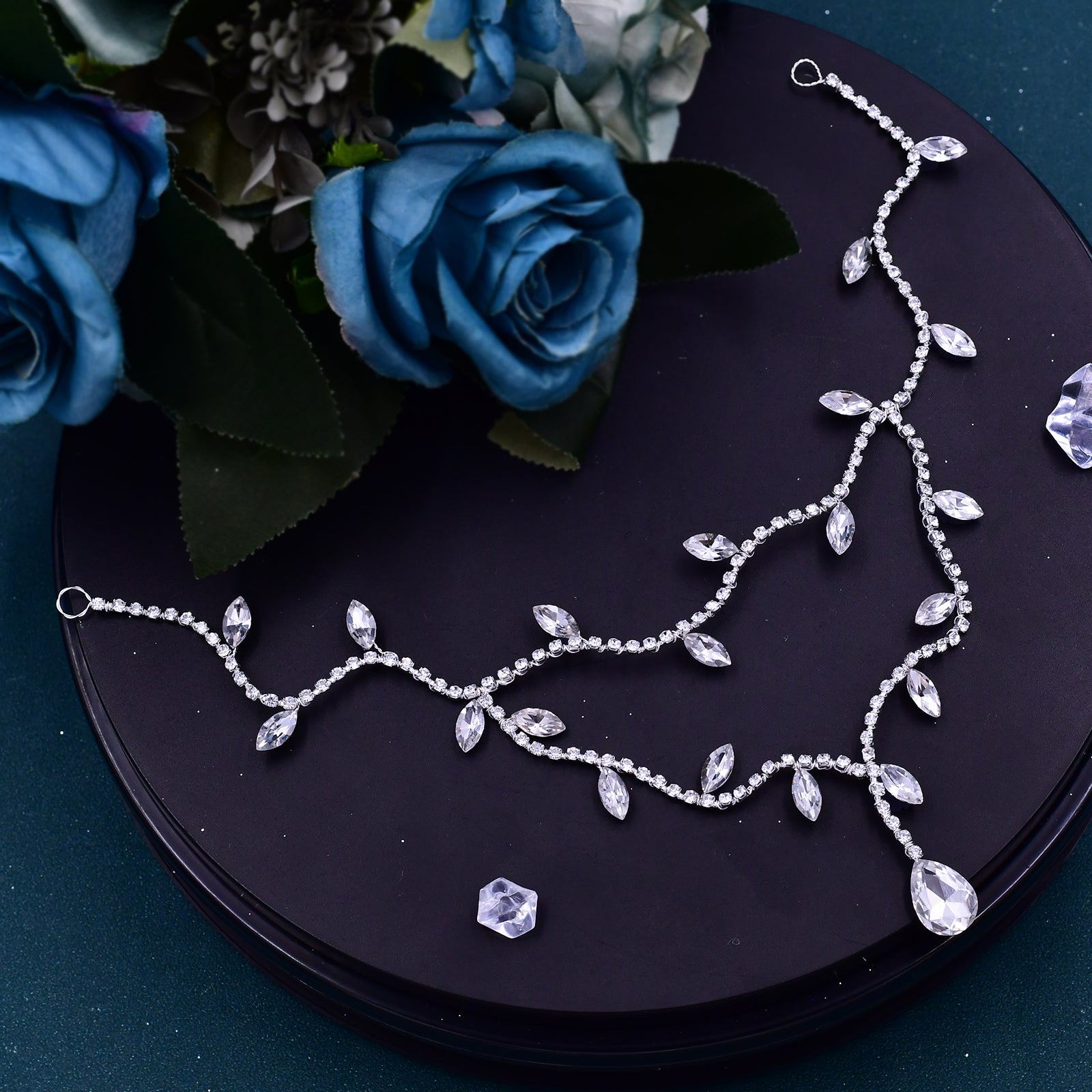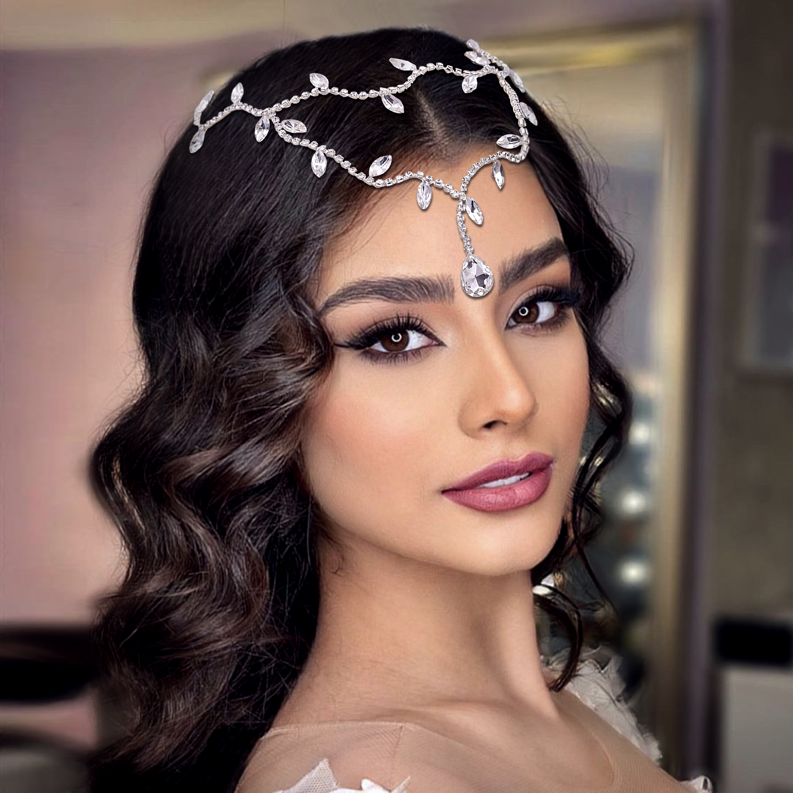 BRIDELLA BHP495 Forehead Pendant Hair Accessory with Diamond Inlay,Handmade Hair Accessory,Wedding Diamond Hair accessory, Bride's forehead Decoration