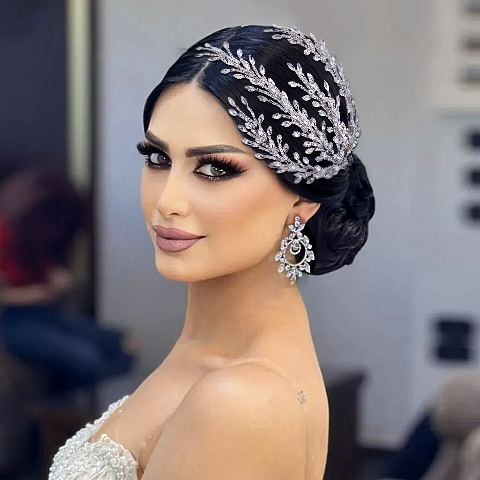 BRIDELLA BHP498 Silver Color Bridal Headpiece with Comb Rhinestone Wedding Hair Accessories Luxury Bride Headdress Hair Jewelry