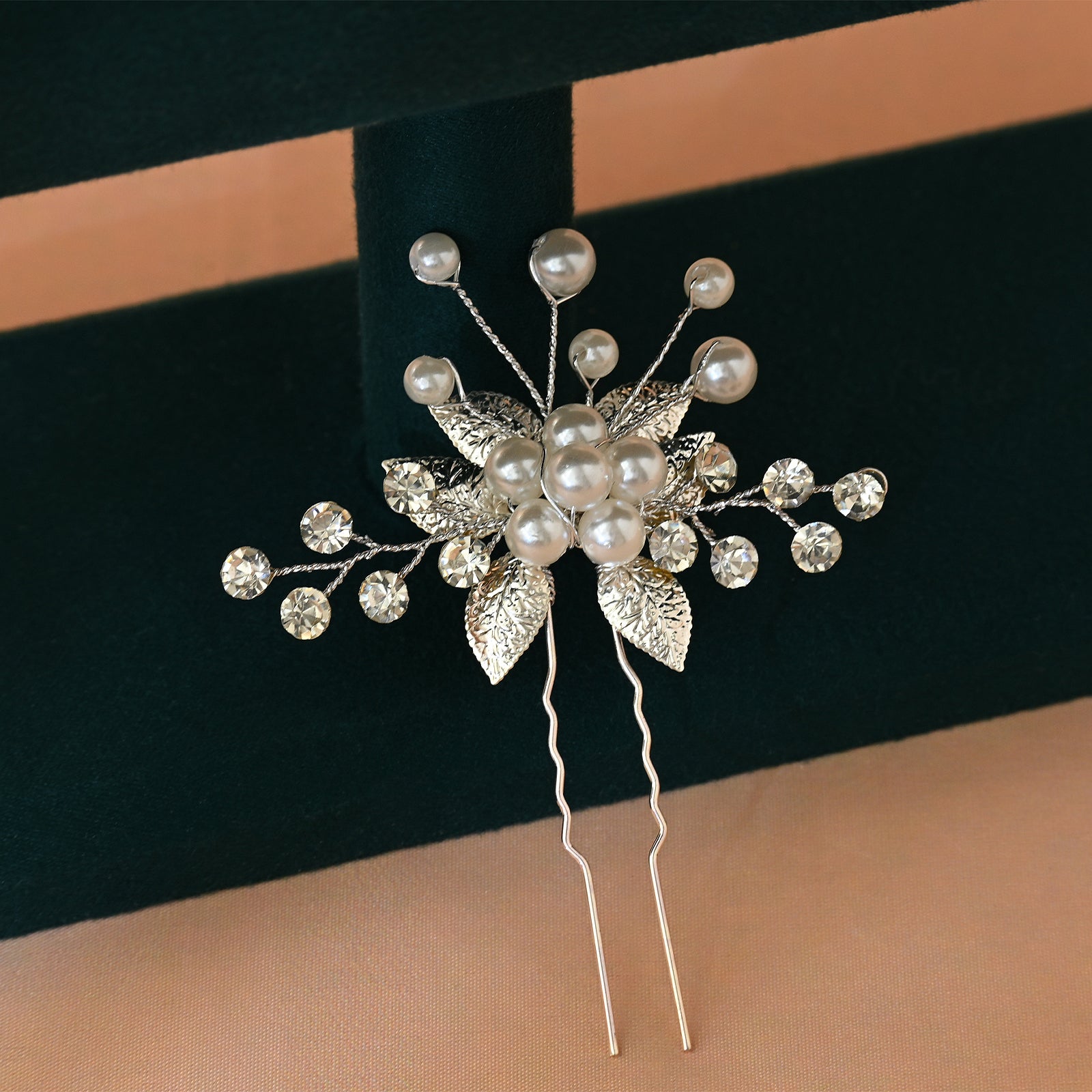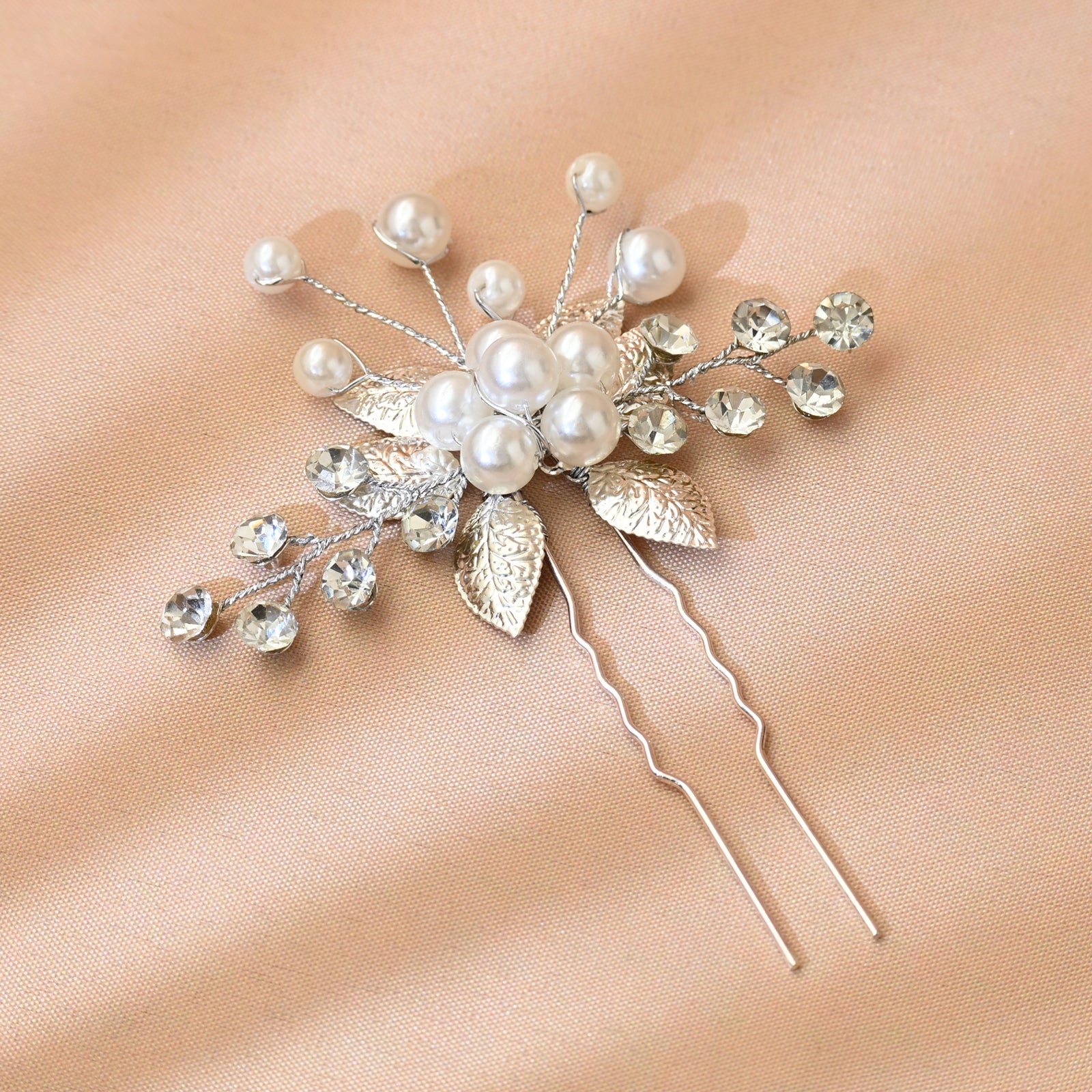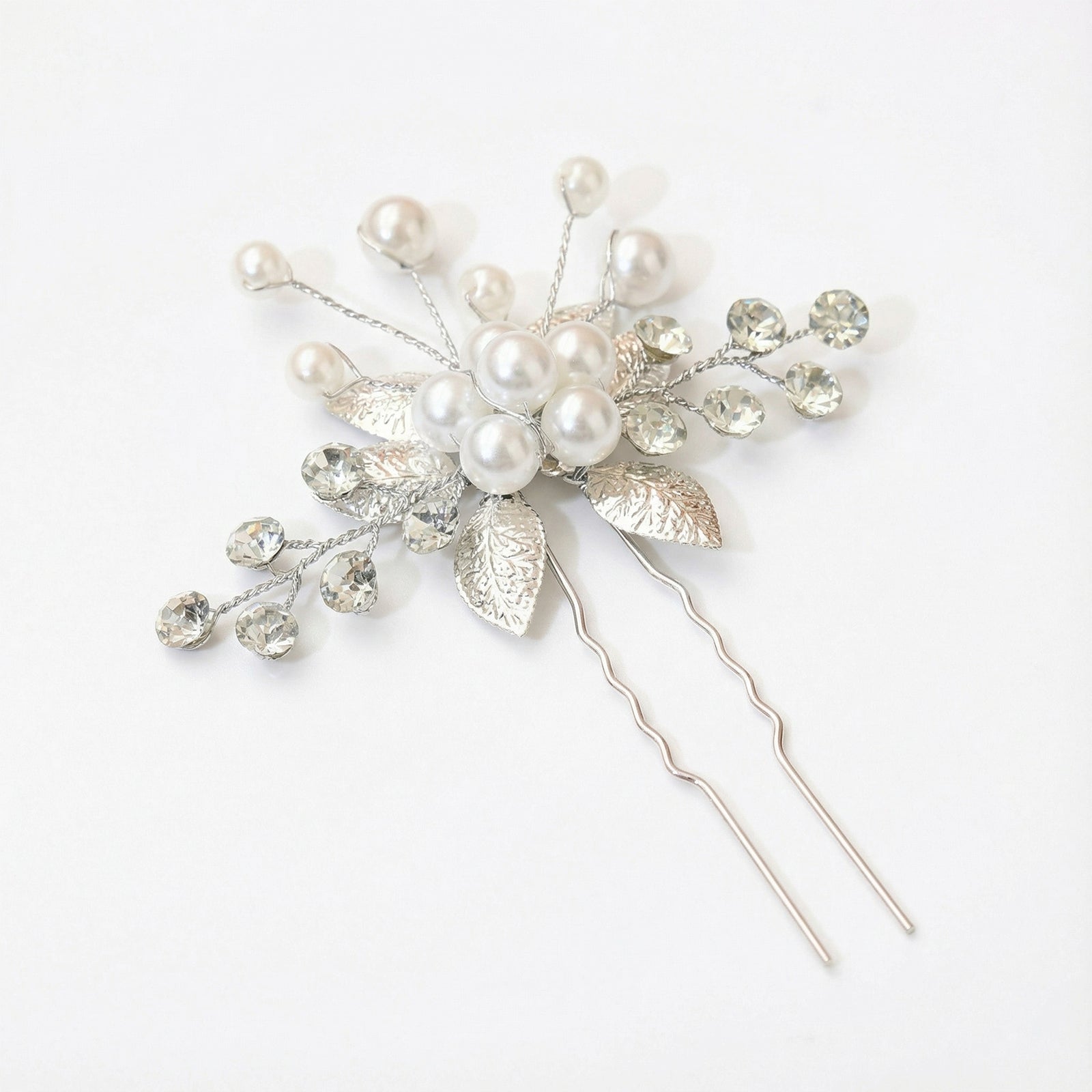 Elevate your look with this silver rhinestone and pearl headwear, perfect for weddings, proms, and special occasions.