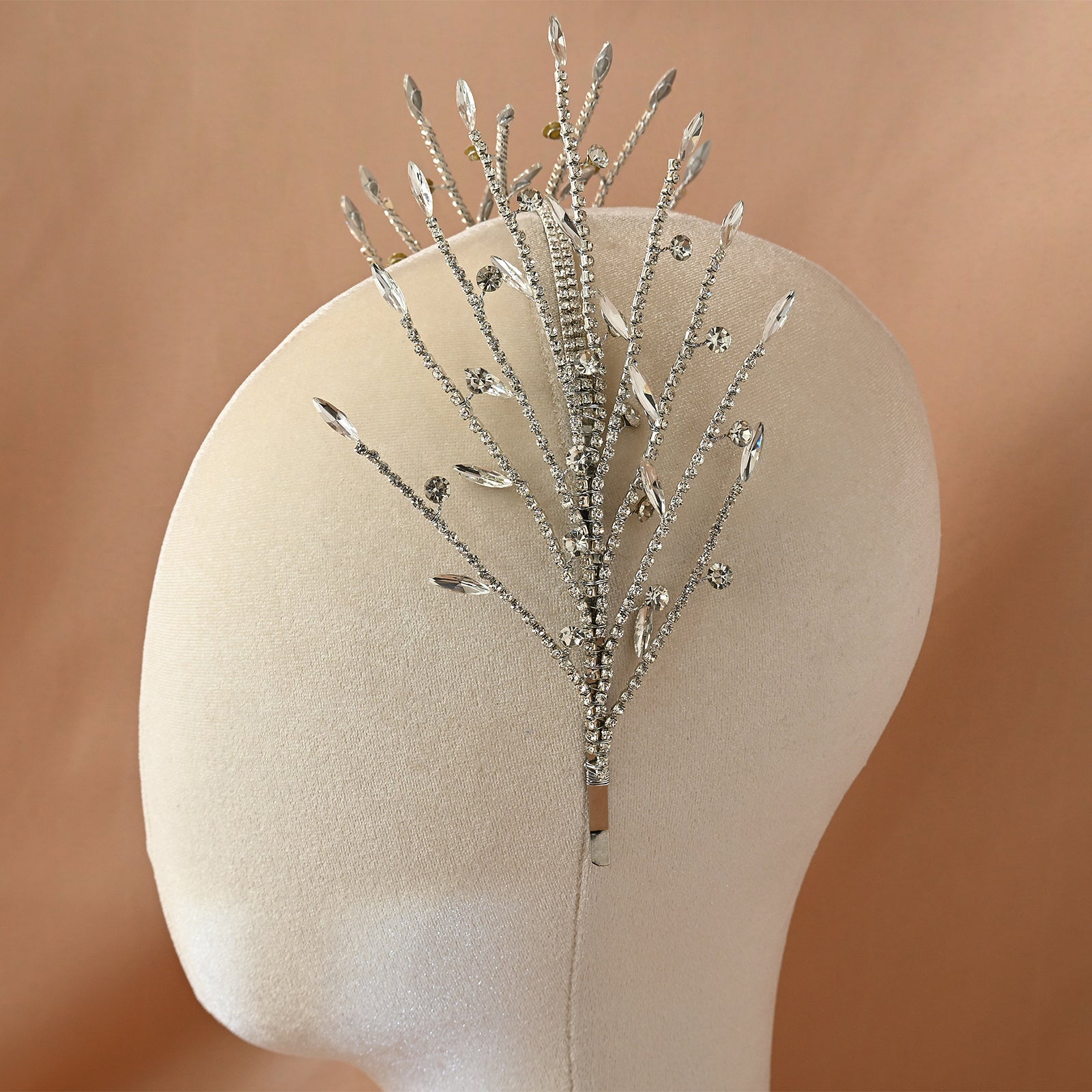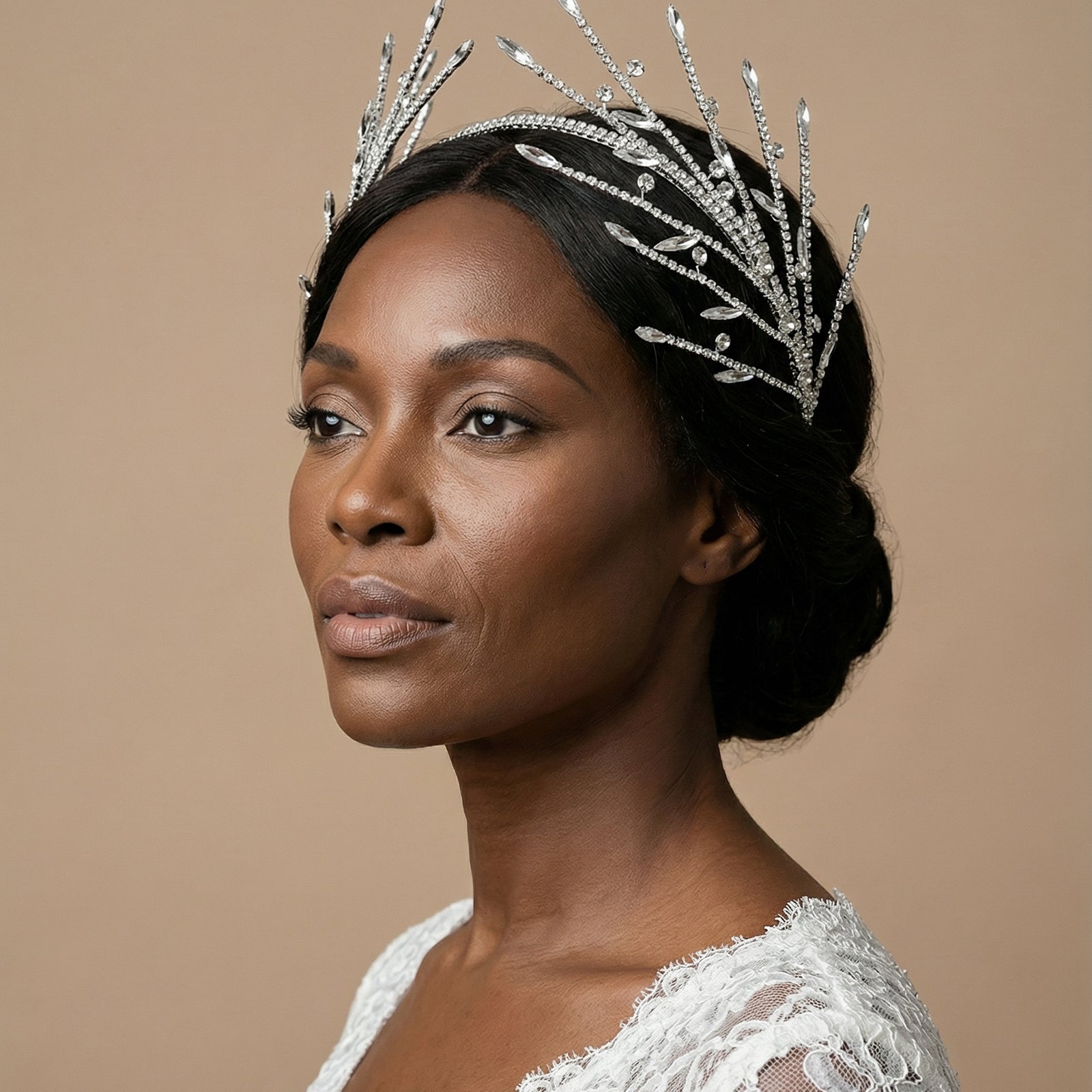 Elevate your look with this silver rhinestone tiara, perfect for weddings, proms, and special occasions.