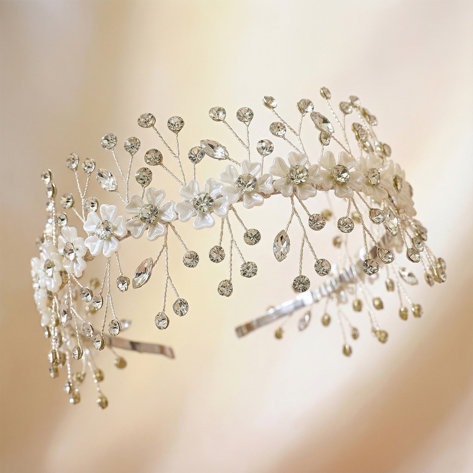Elevate your look with this silver rhinestone and flower headband, perfect for weddings, proms, and special occasions.
